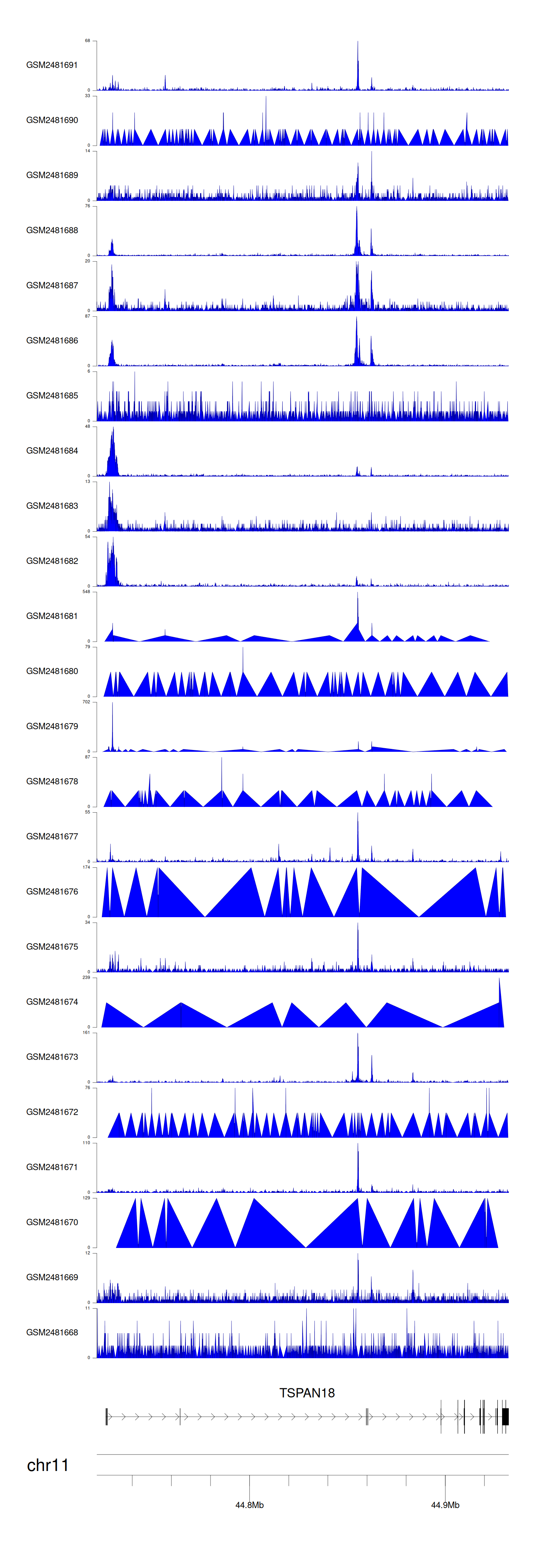 > Dataset: GSE94732 - TSPAN18 peak across samples