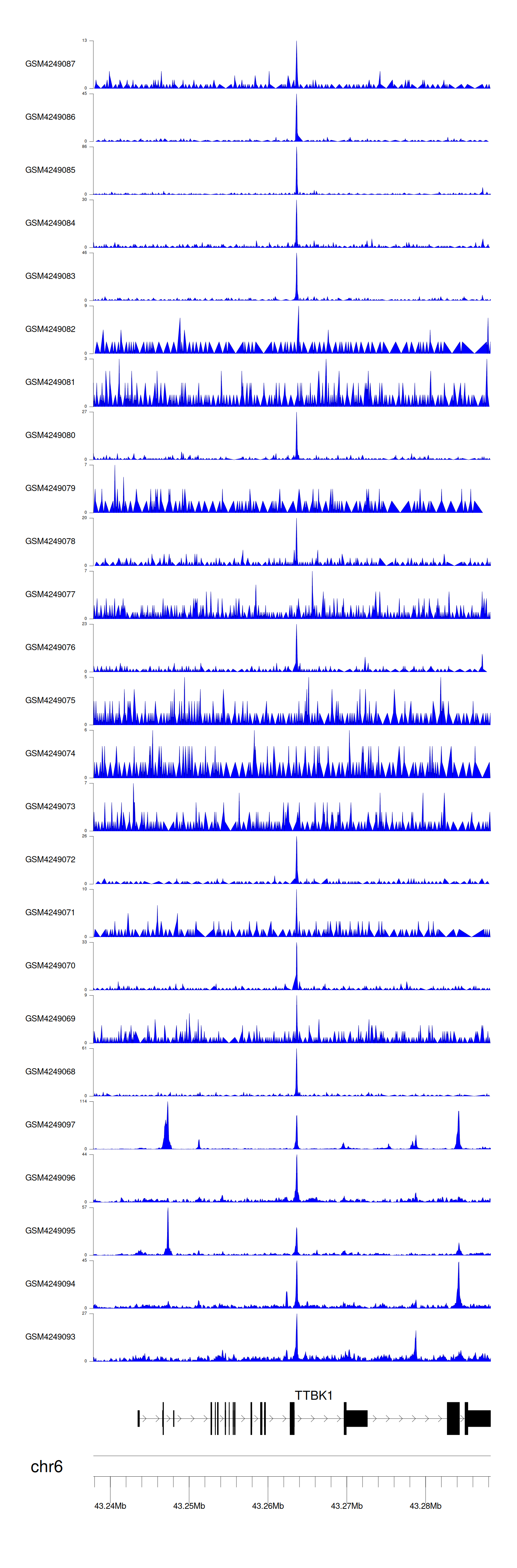 > Dataset: GSE143026 - TTBK1 peak across samples