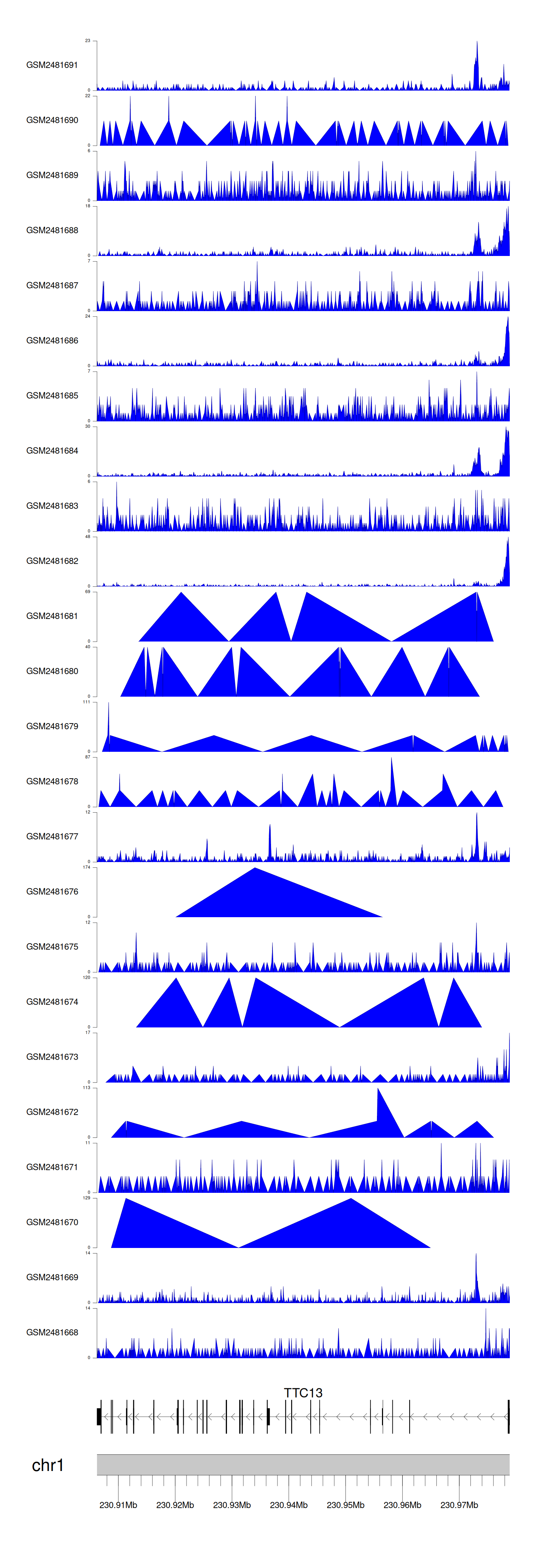 > Dataset: GSE94732 - TTC13 peak across samples