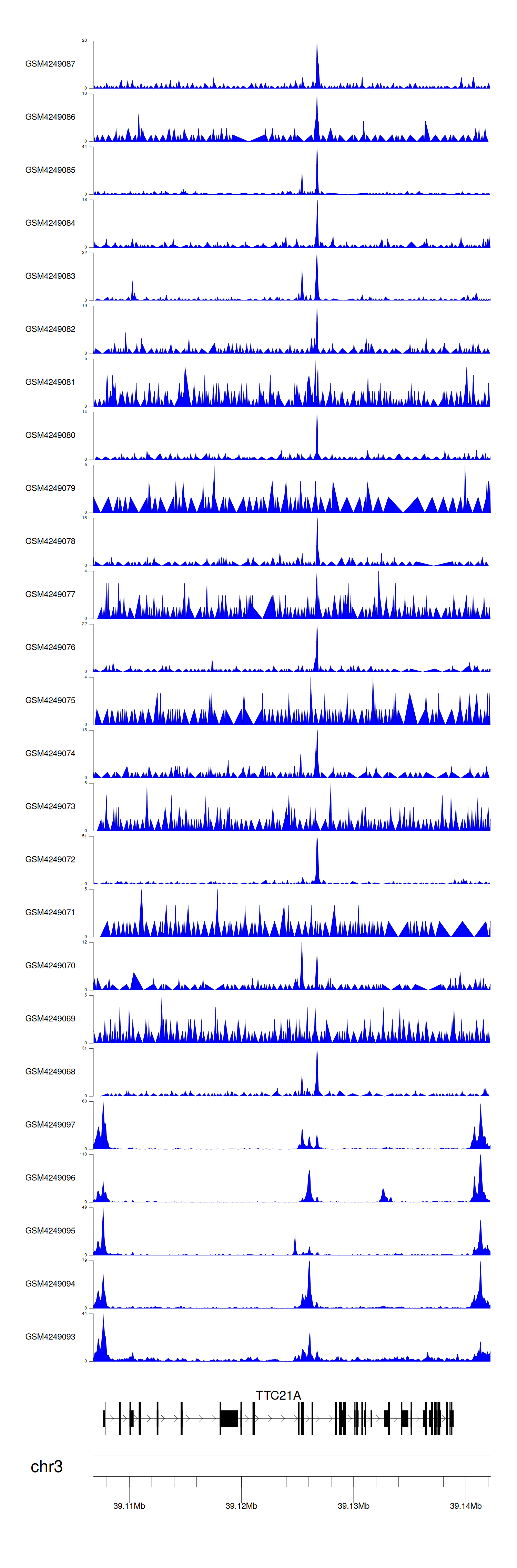 > Dataset: GSE143026 - TTC21A peak across samples