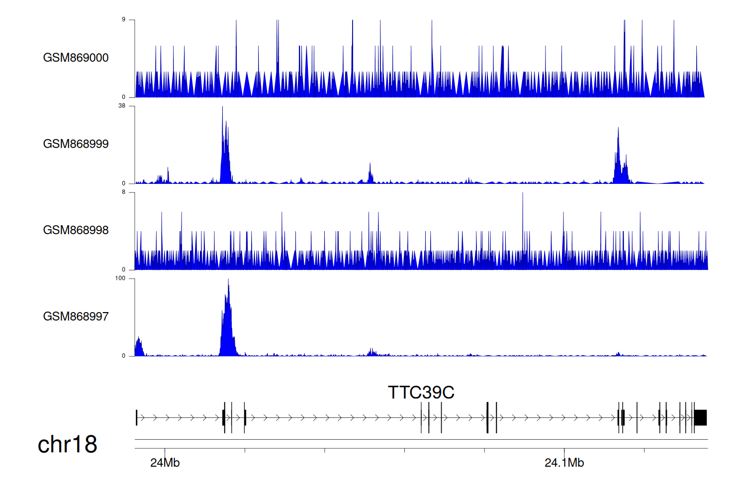 > Dataset: GSE100400 - TTC39C peak across samples