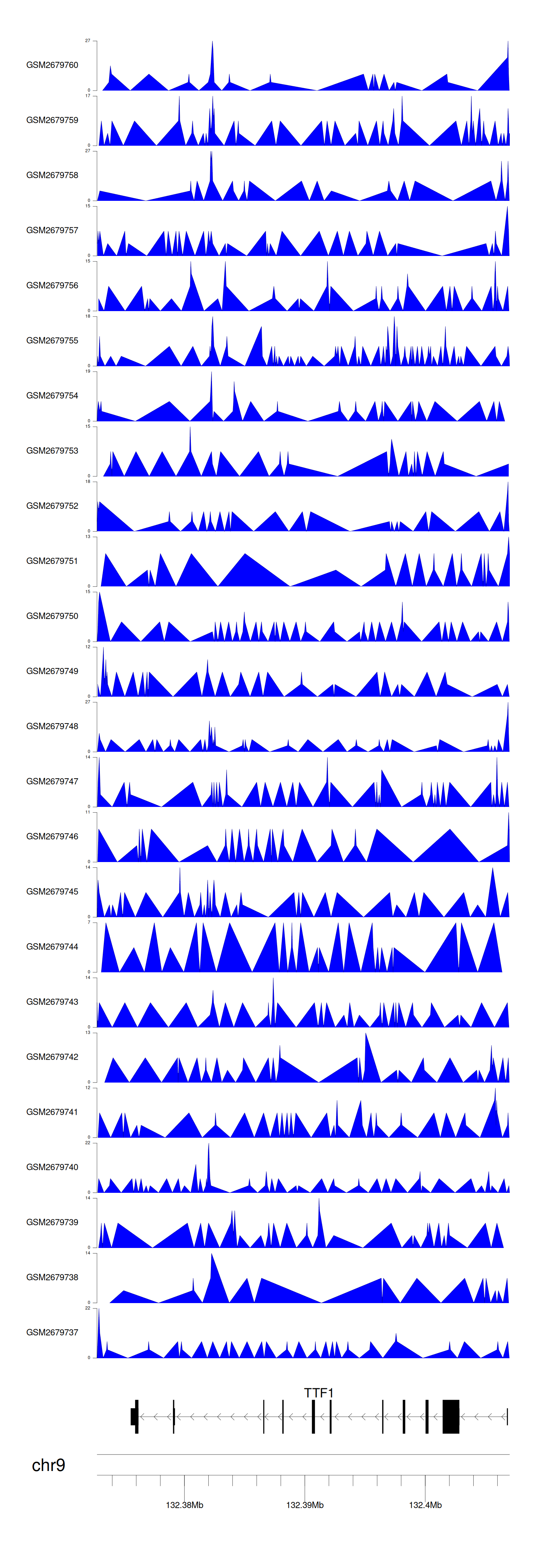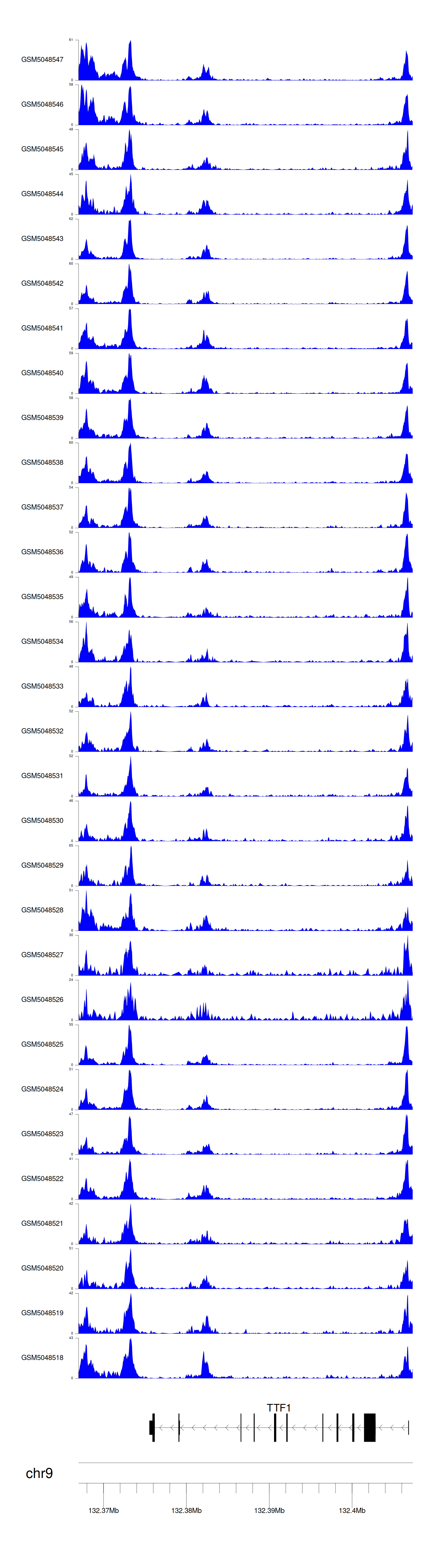 > Dataset: GSE30738 - TTF1 peak across samples
