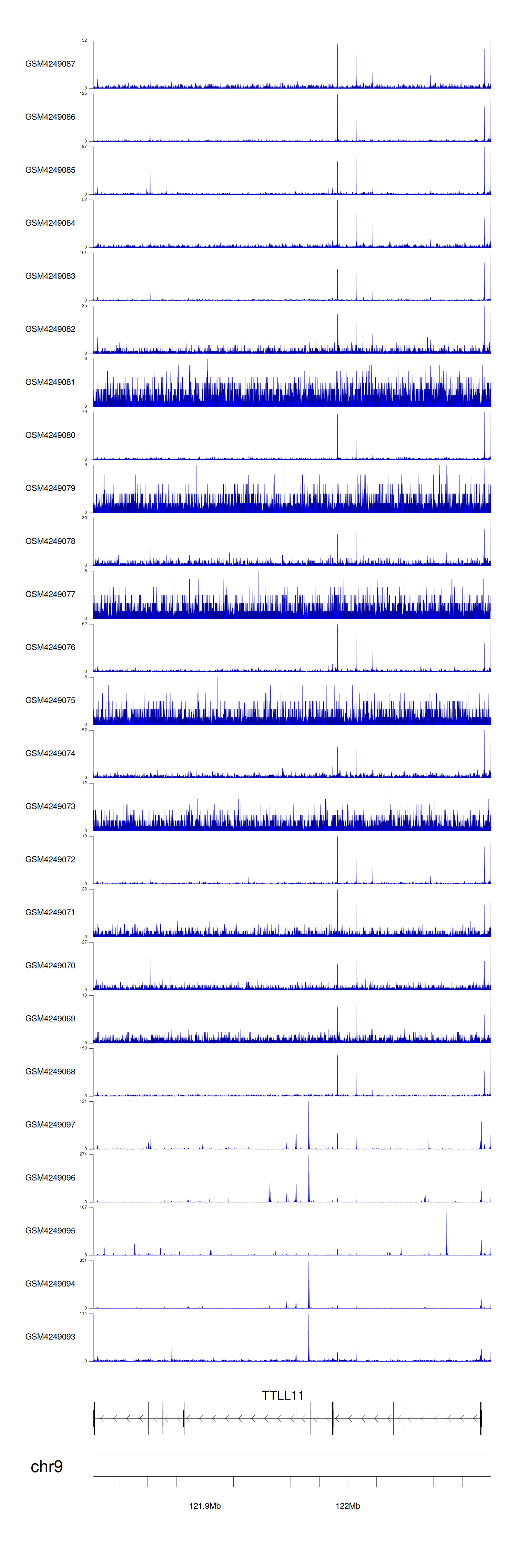 > Dataset: GSE143026 - TTLL11 peak across samples