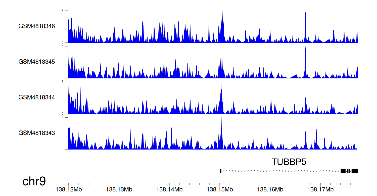 > Dataset: GSE131257 - TUBBP5 peak across samples