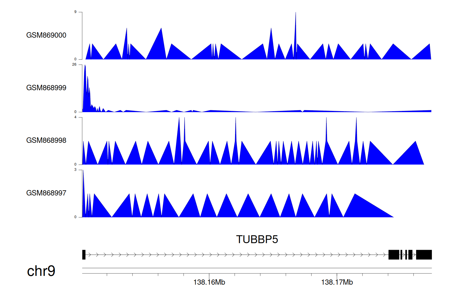 > Dataset: GSE68402 - TUBBP5 peak across samples