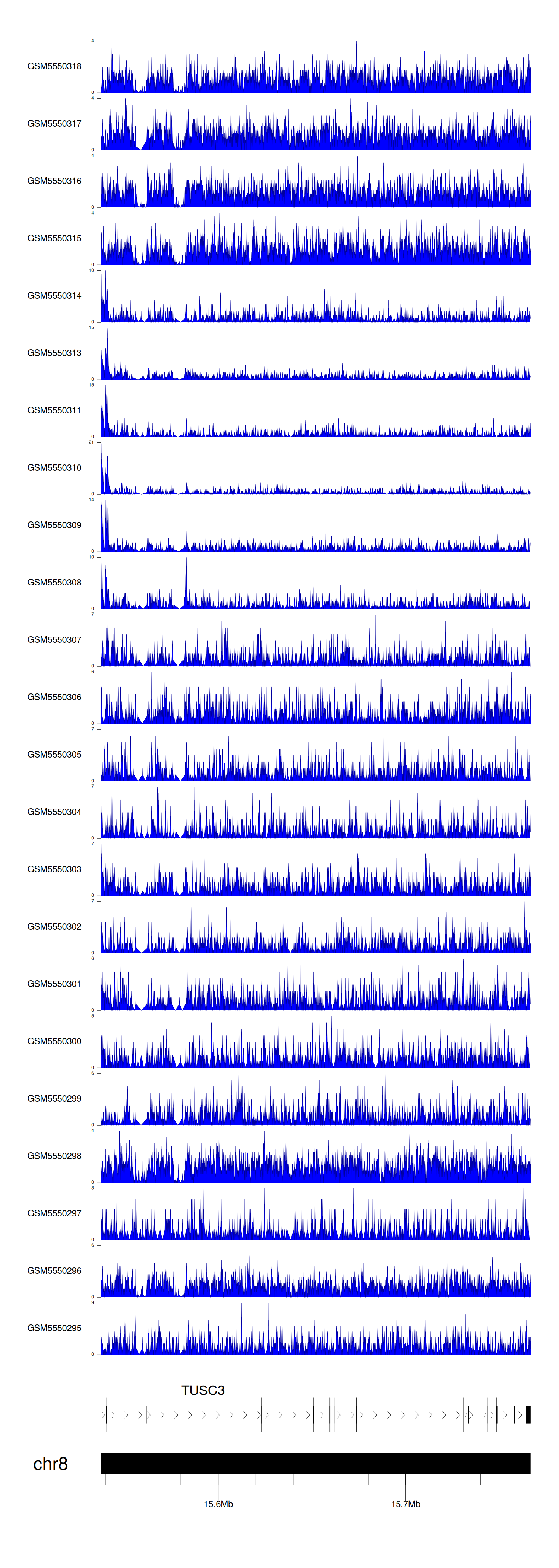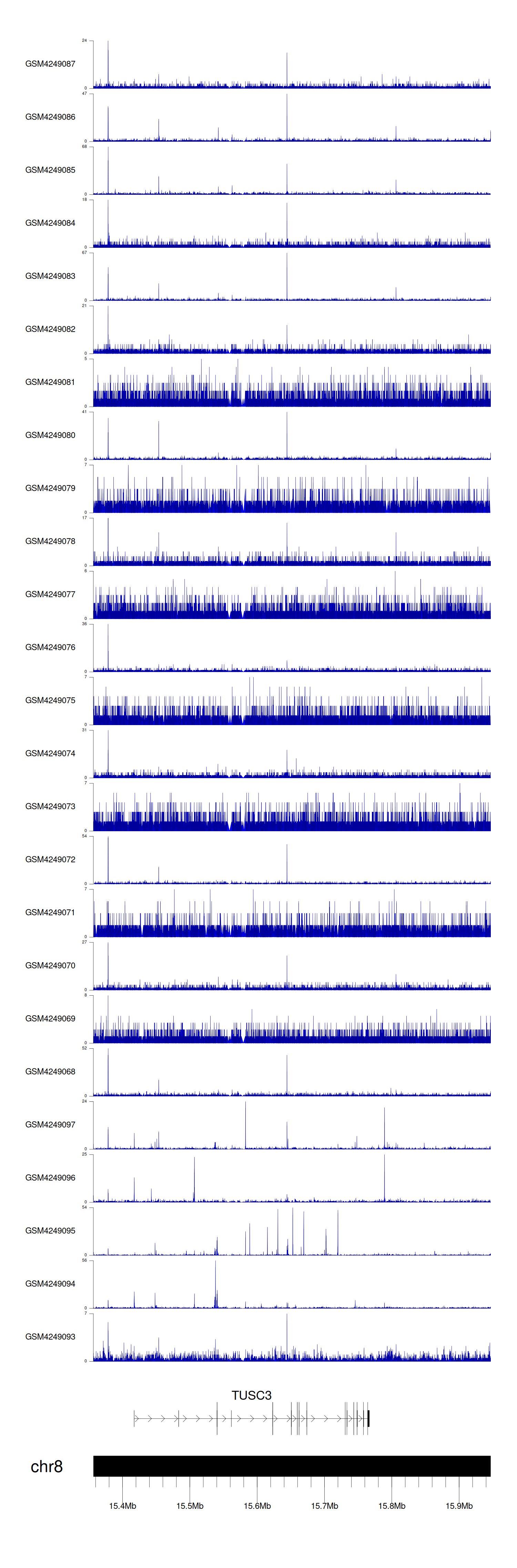 > Dataset: GSE143026 - TUSC3 peak across samples