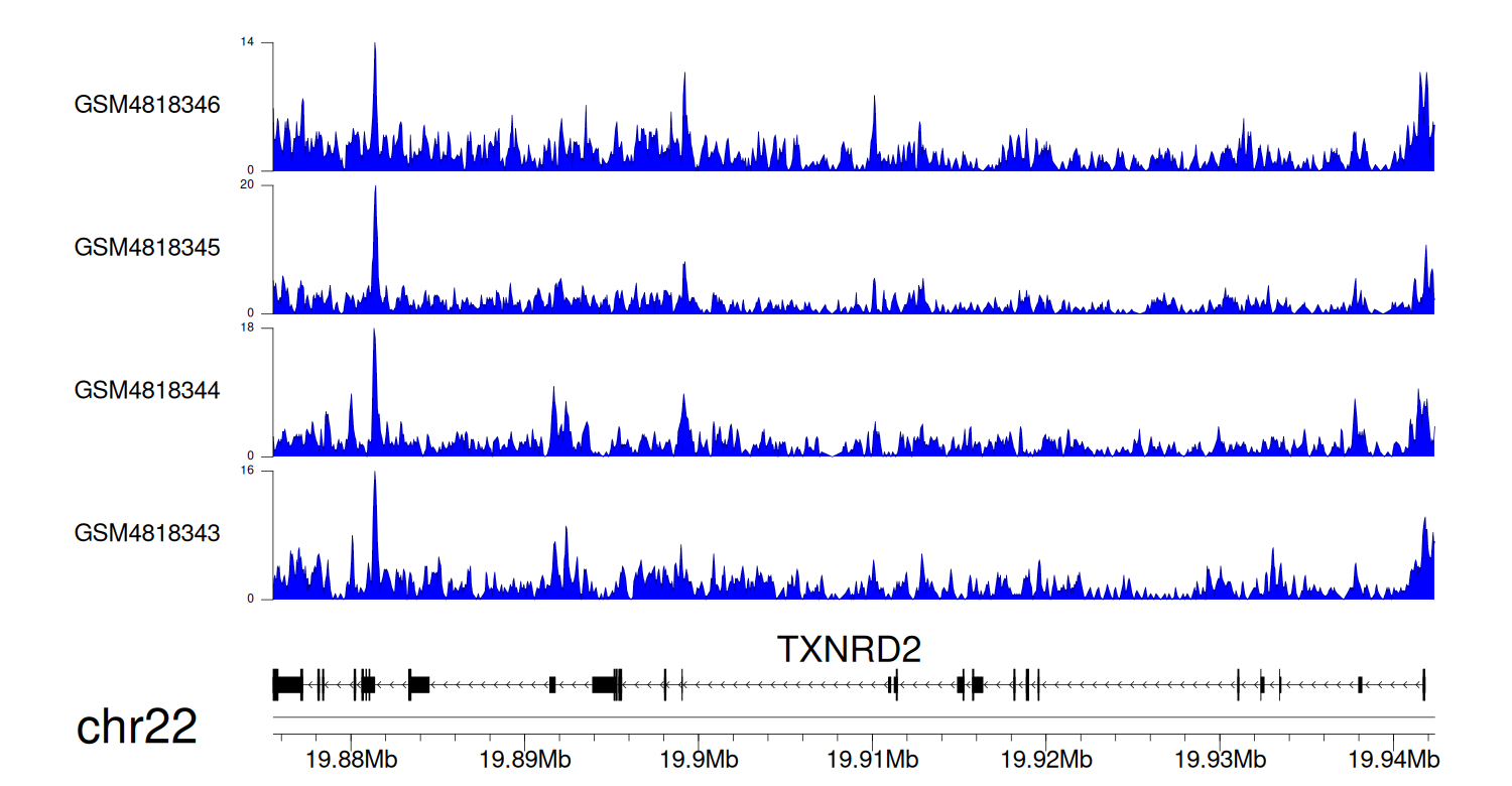 > Dataset: GSE131257 - TXNRD2 peak across samples