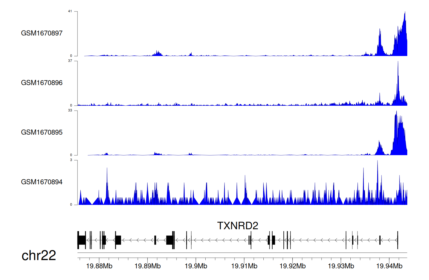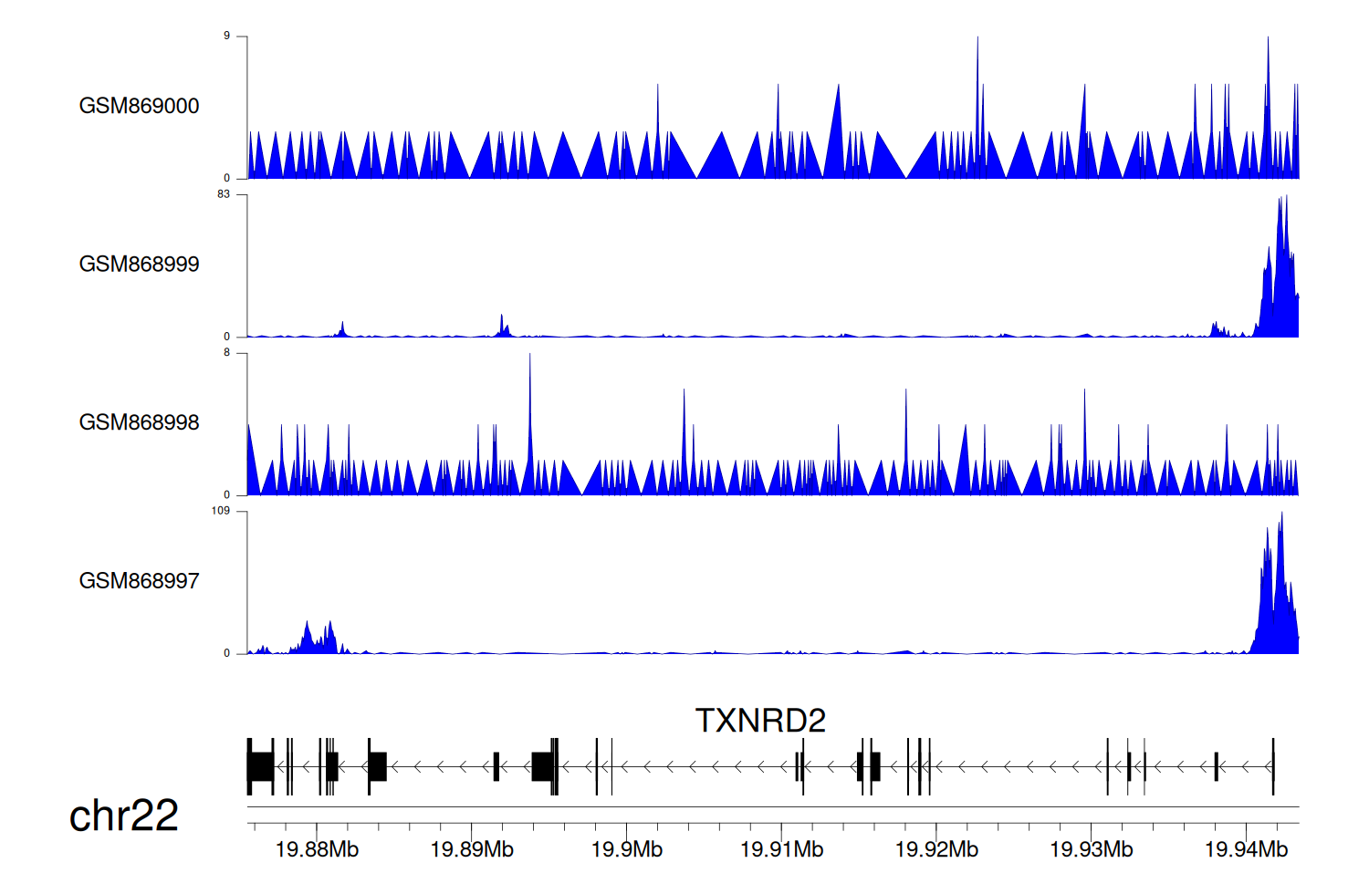 > Dataset: GSE68402 - TXNRD2 peak across samples