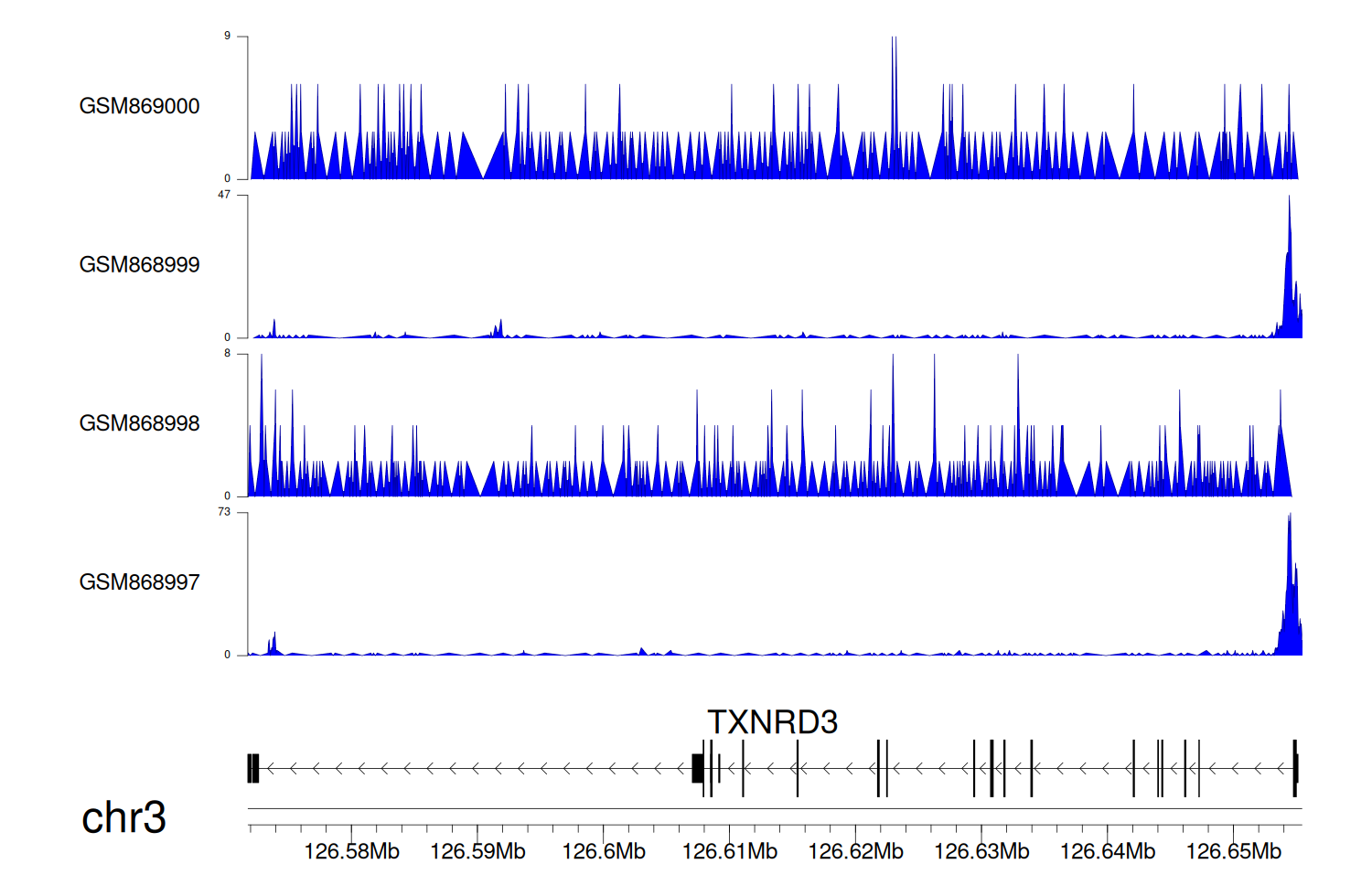 > Dataset: GSE68402 - TXNRD3 peak across samples