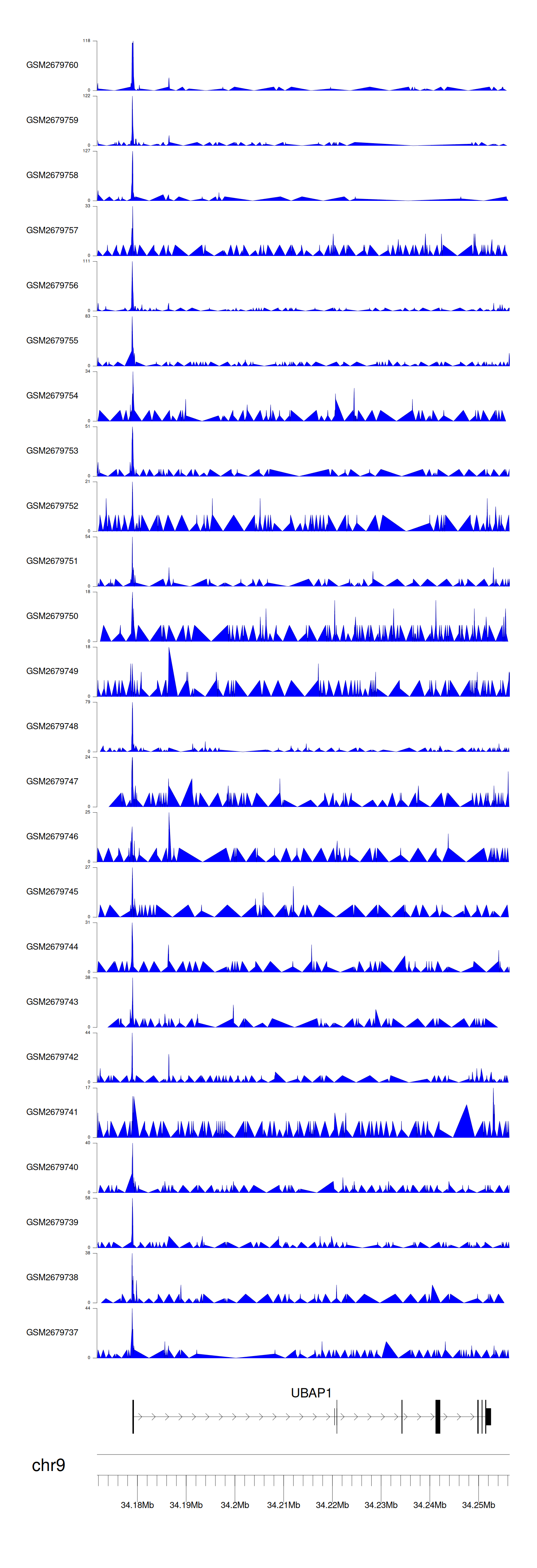 > Dataset: GSE100376 - UBAP1 peak across samples
