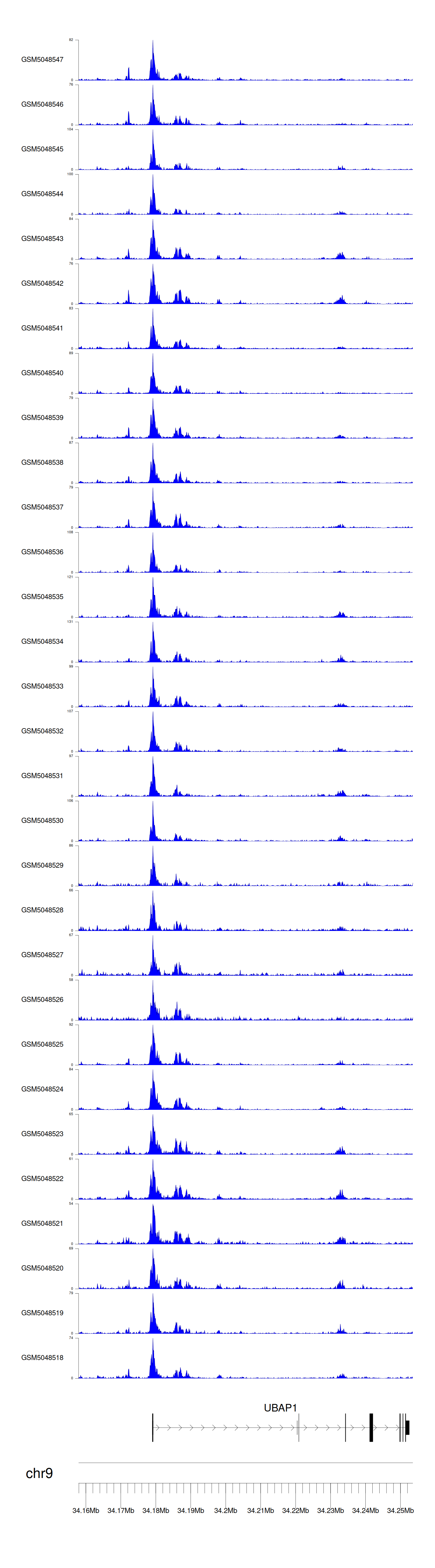 > Dataset: GSE30738 - UBAP1 peak across samples