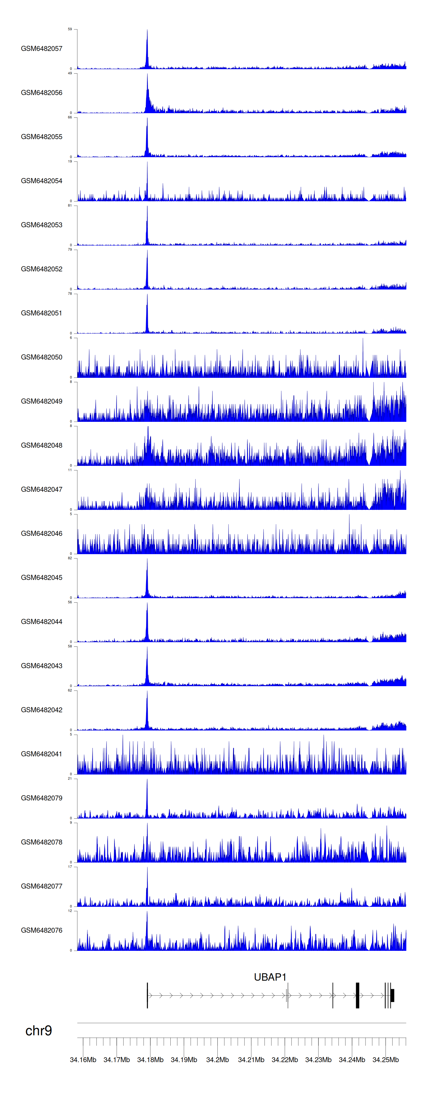 > Dataset: GSE165705 - UBAP1 peak across samples