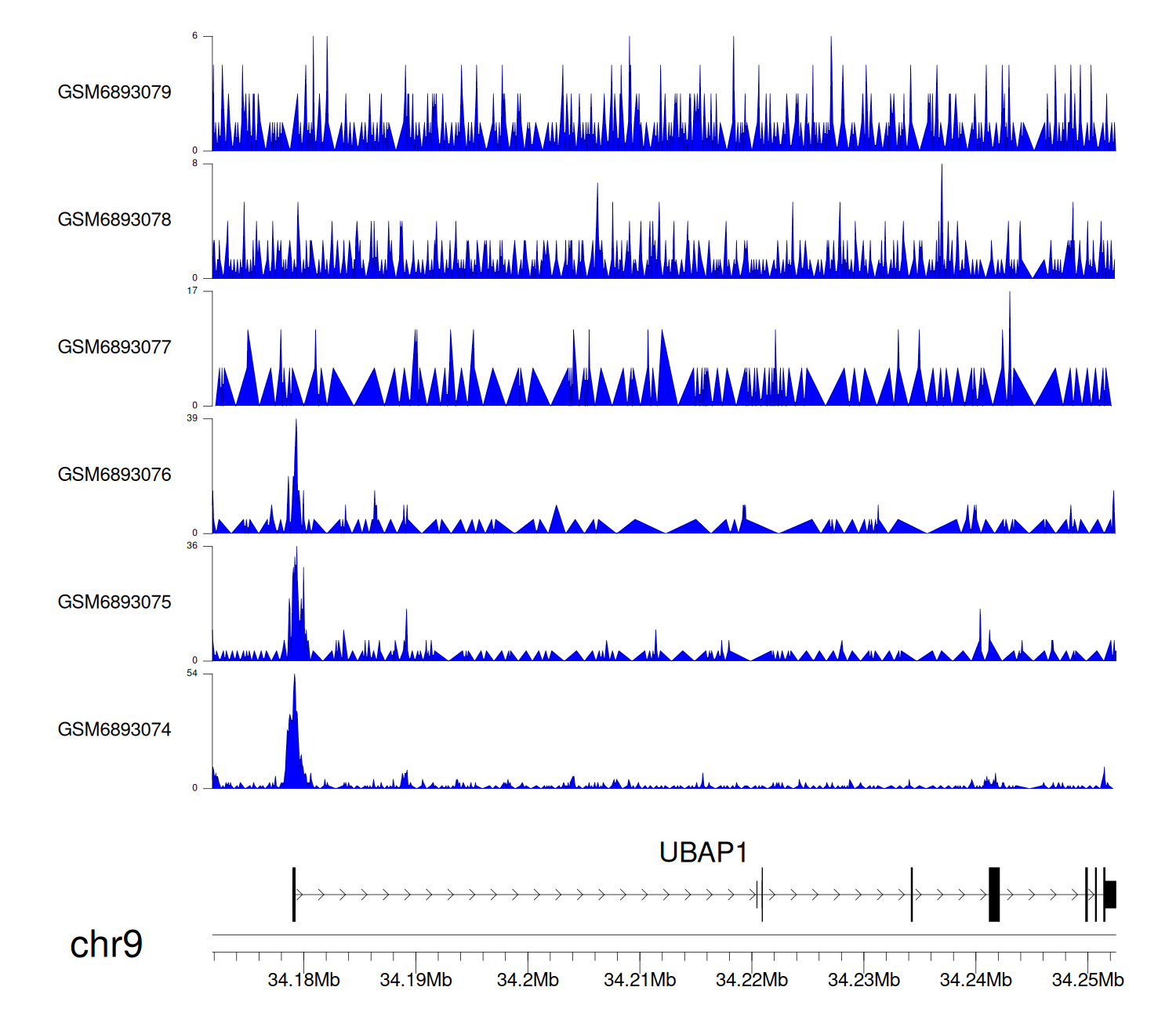 > Dataset: GSE211651 - UBAP1 peak across samples
