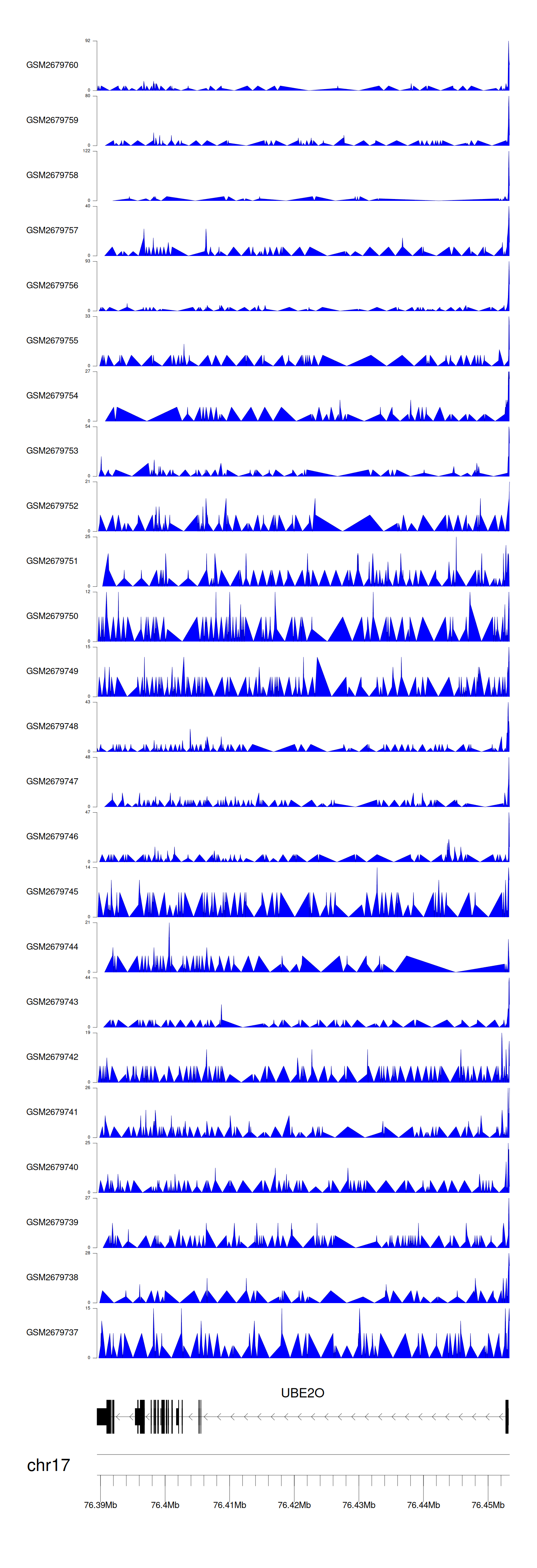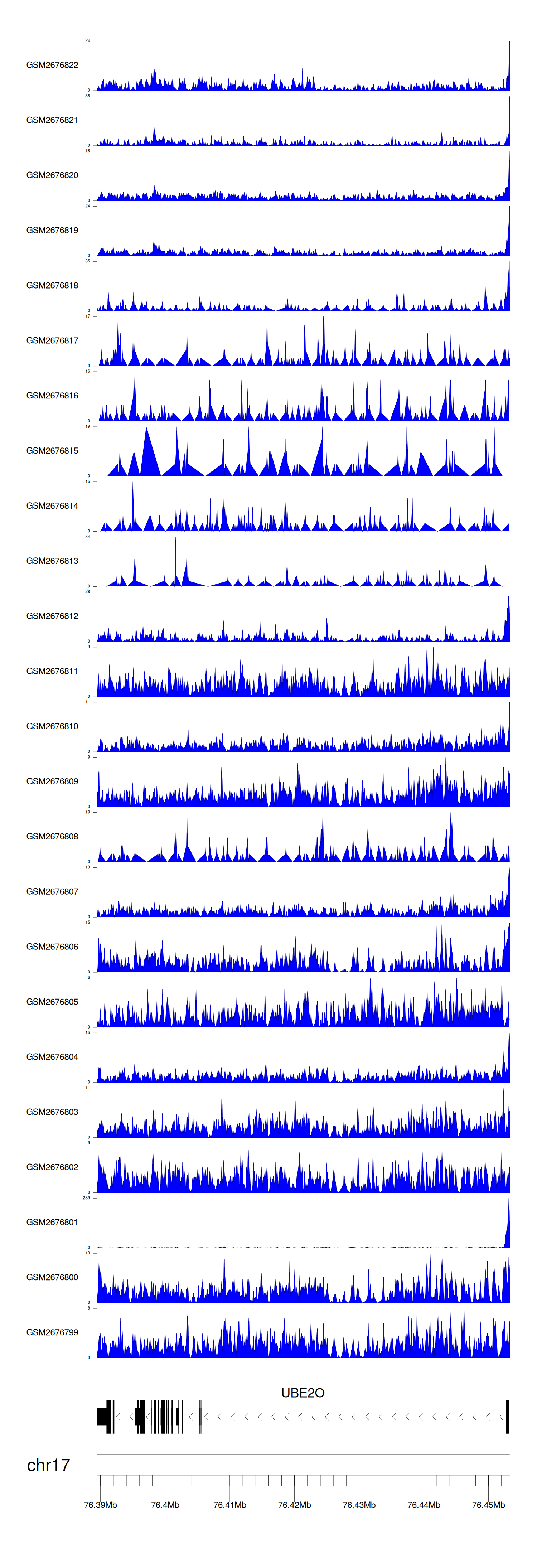 > Dataset: GSE100376 - UBE2O peak across samples