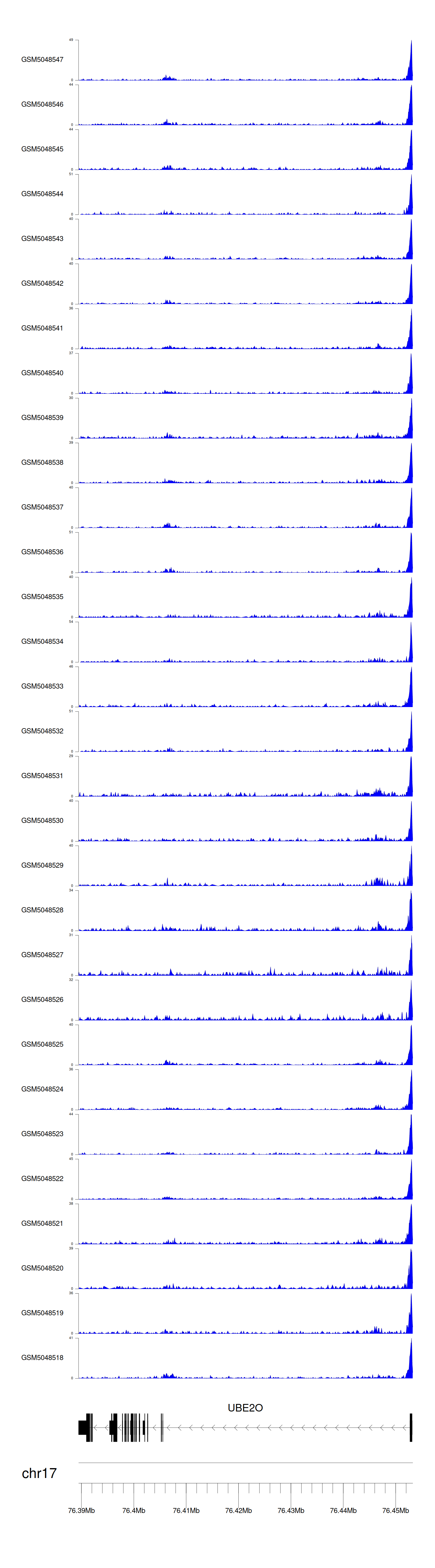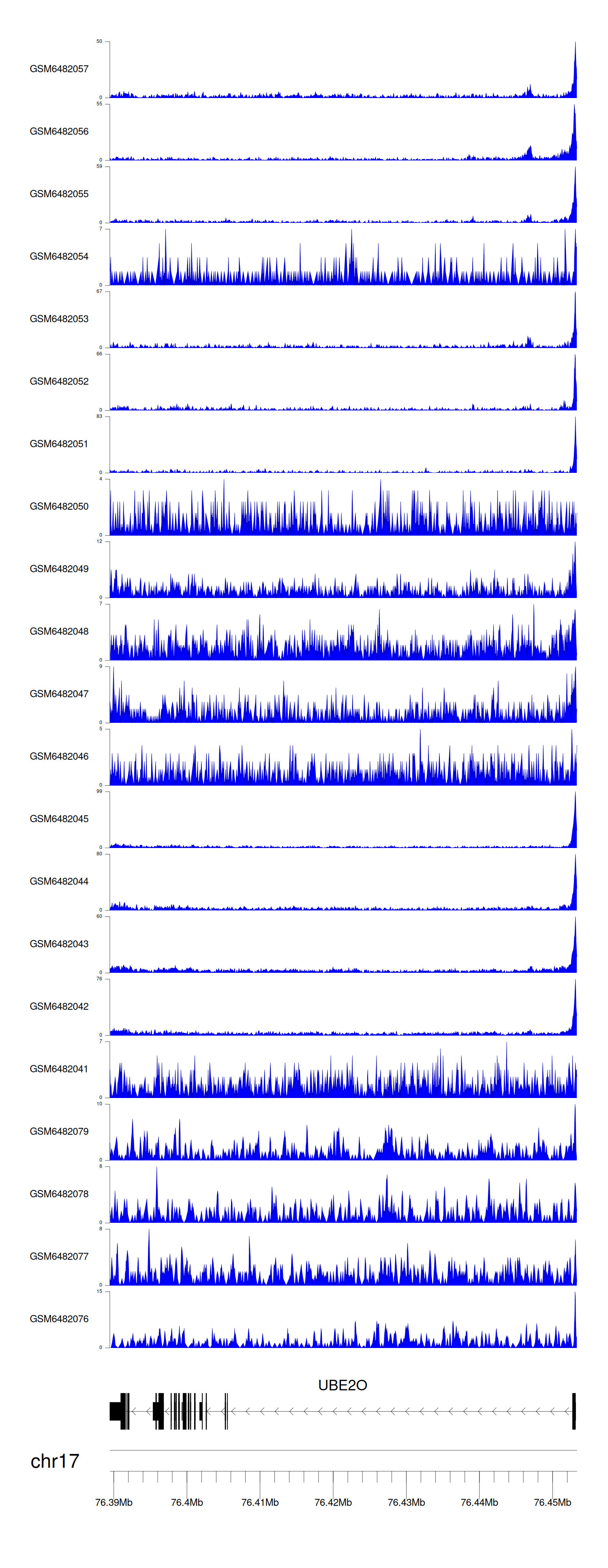 > Dataset: GSE165703 - UBE2O peak across samples
