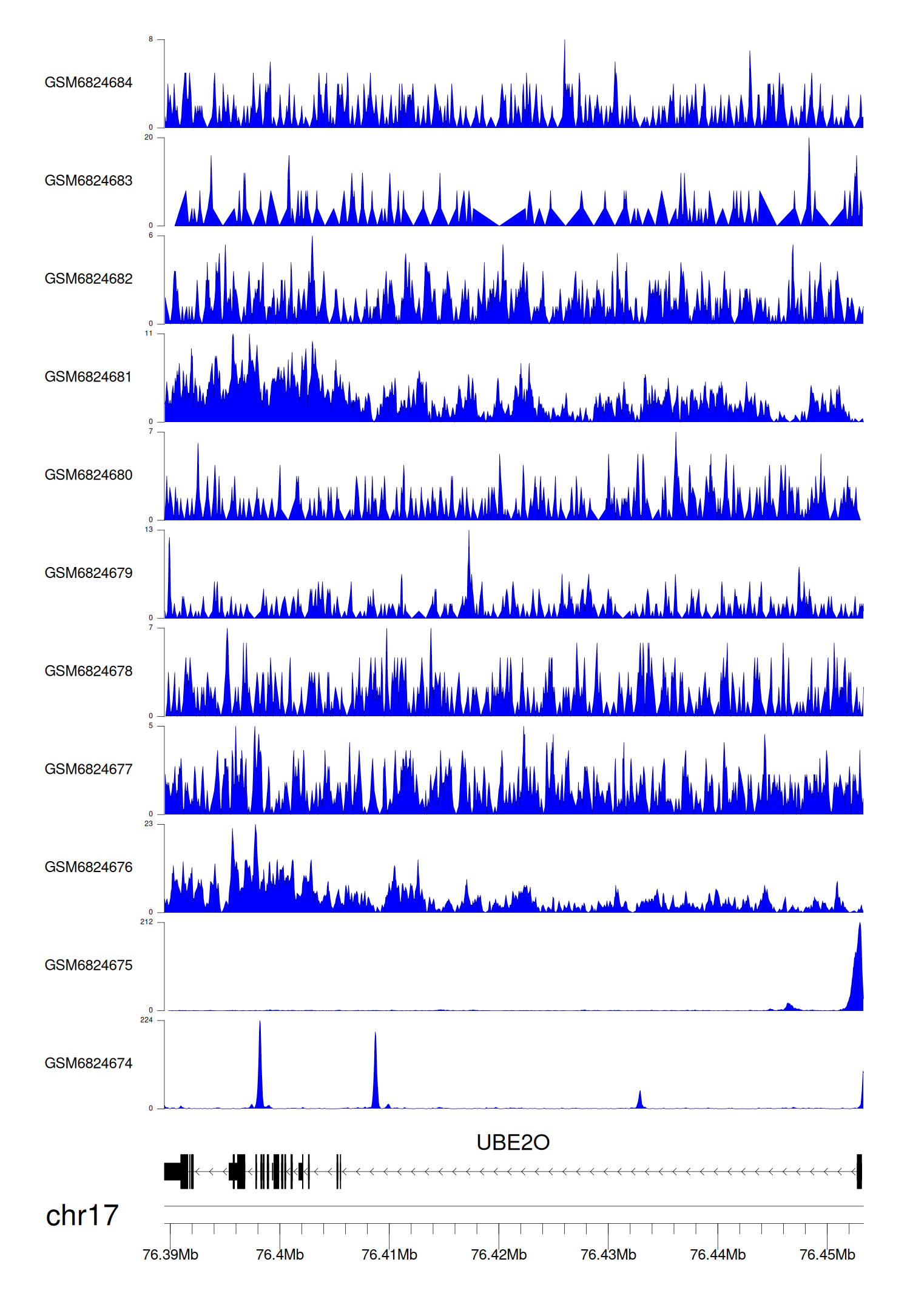 > Dataset: GSE211651 - UBE2O peak across samples