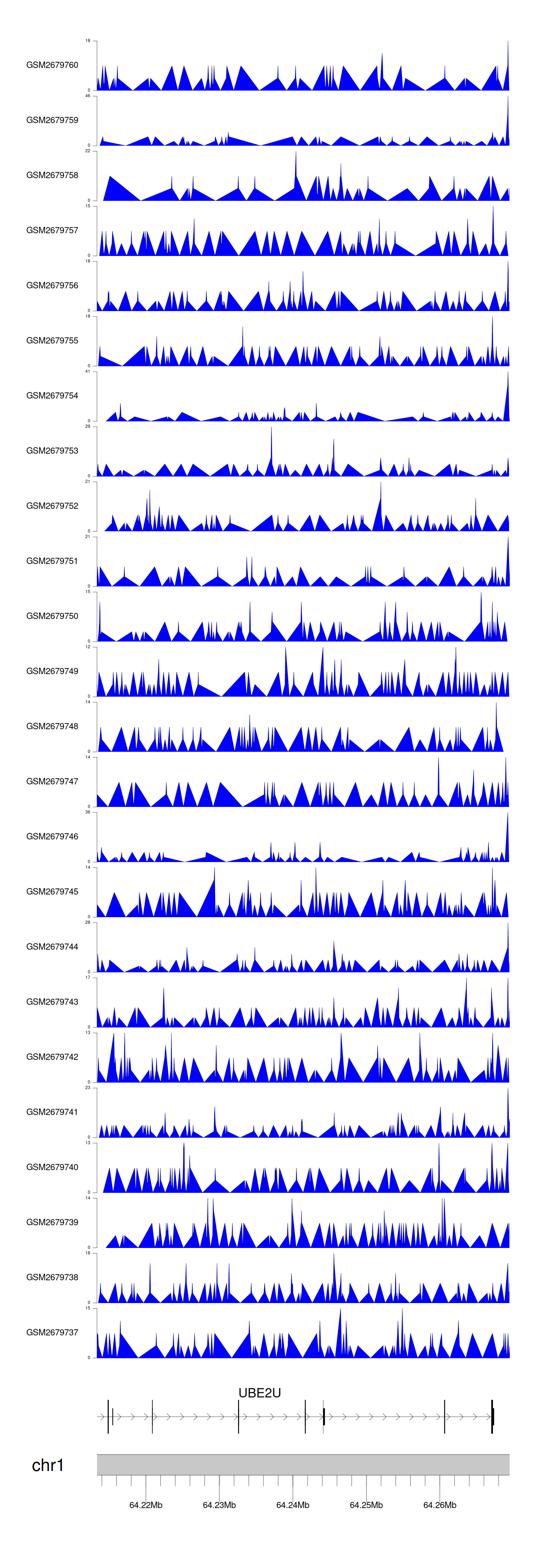 > Dataset: GSE100376 - UBE2U peak across samples