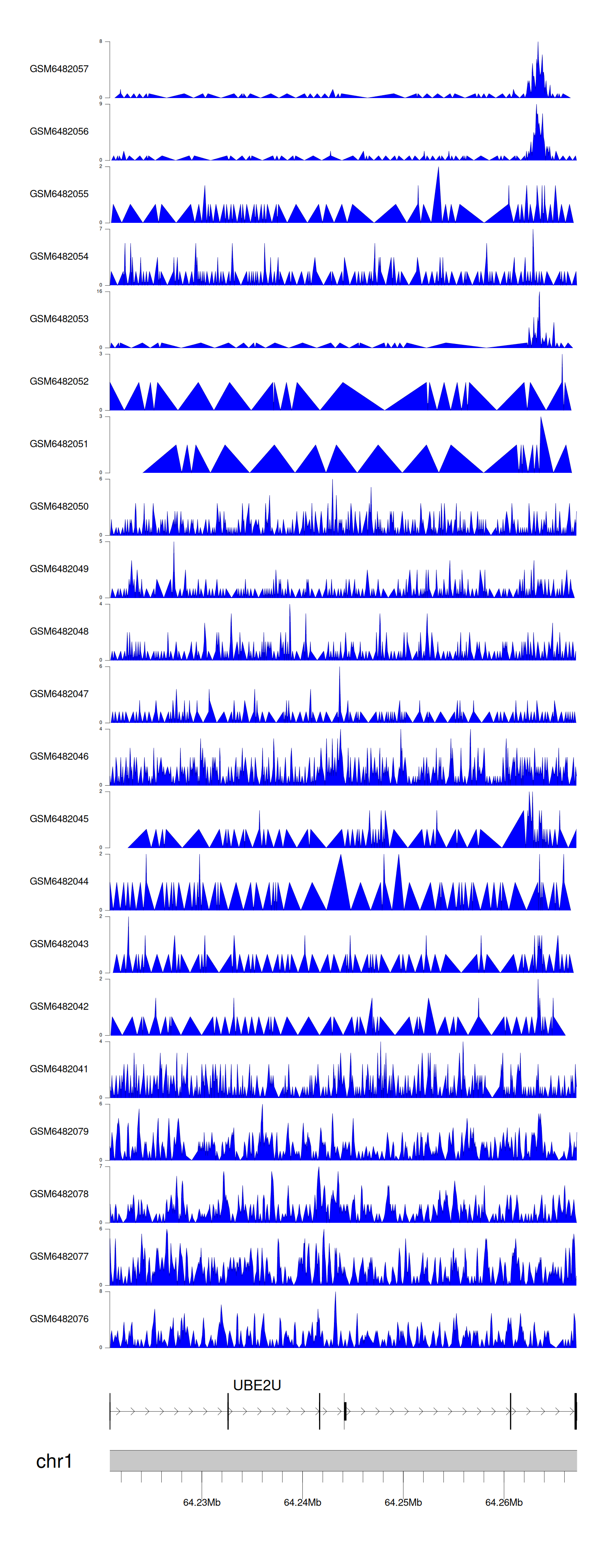 > Dataset: GSE165703 - UBE2U peak across samples