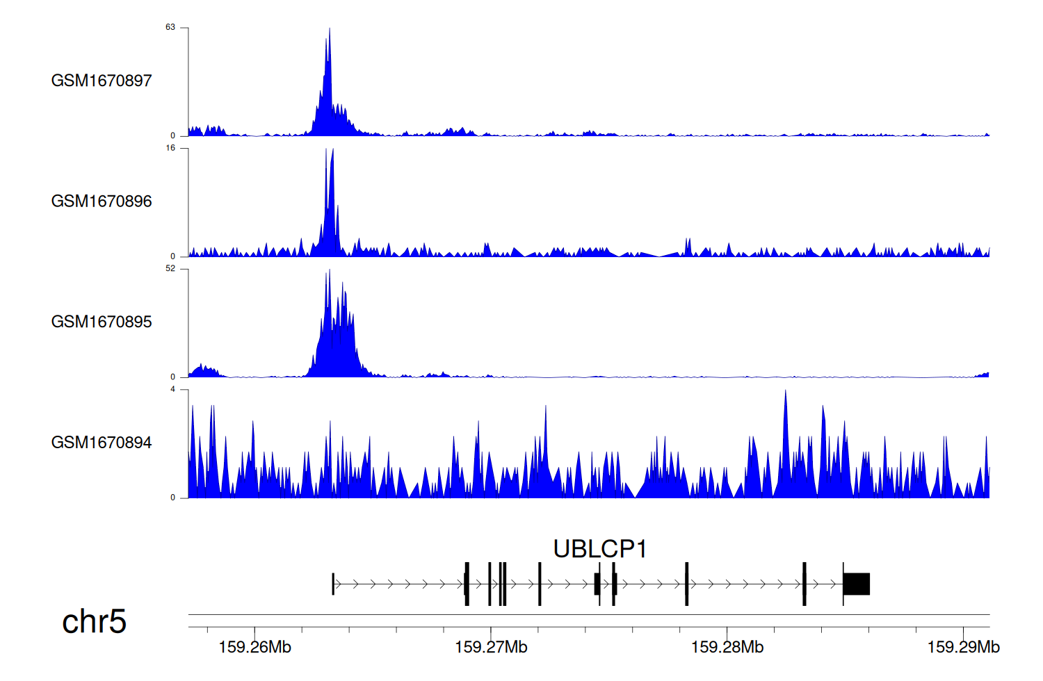 > Dataset: GSE131257 - UBLCP1 peak across samples