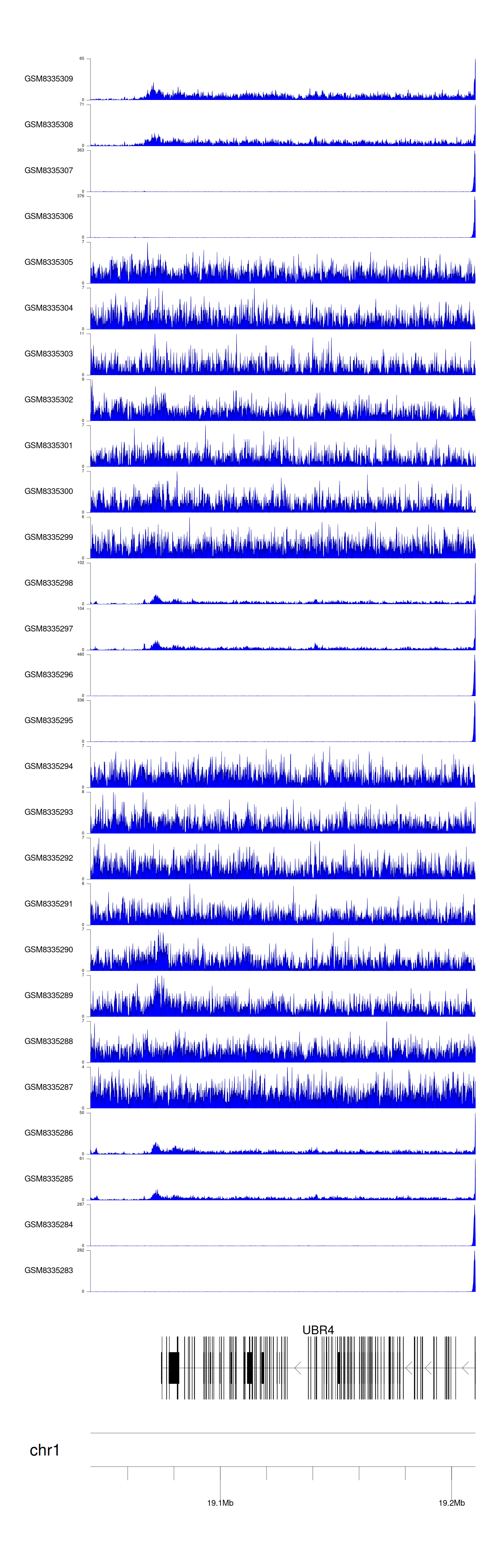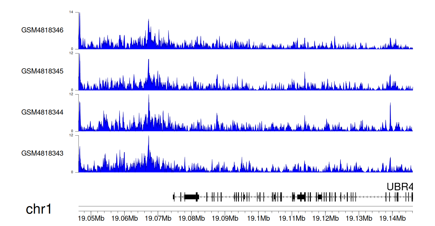 > Dataset: GSE131257 - UBR4 peak across samples