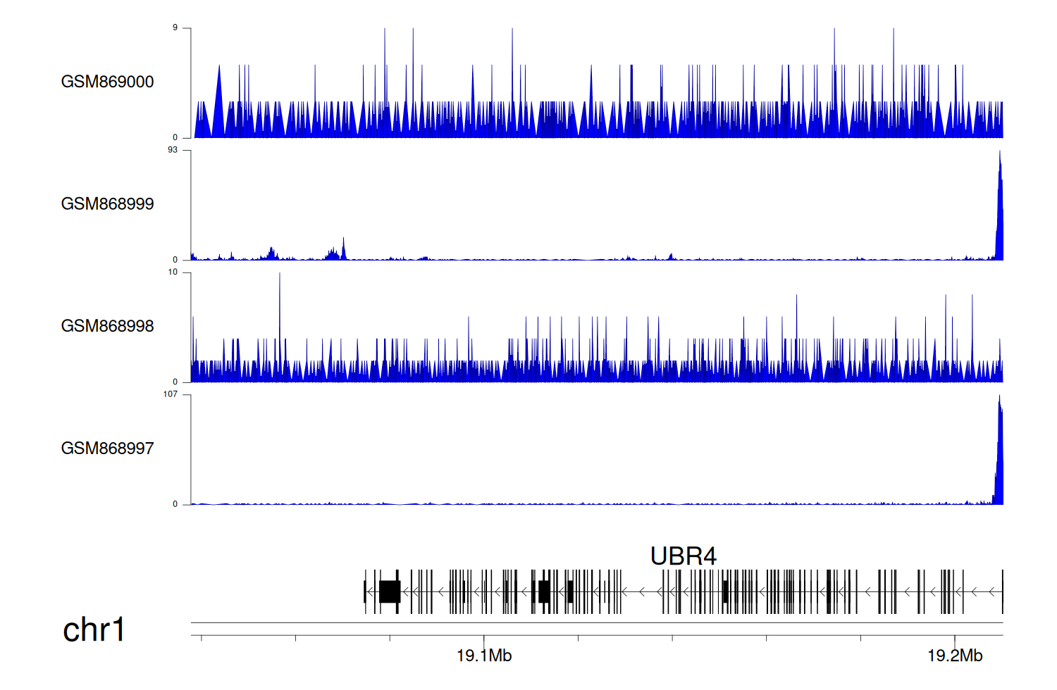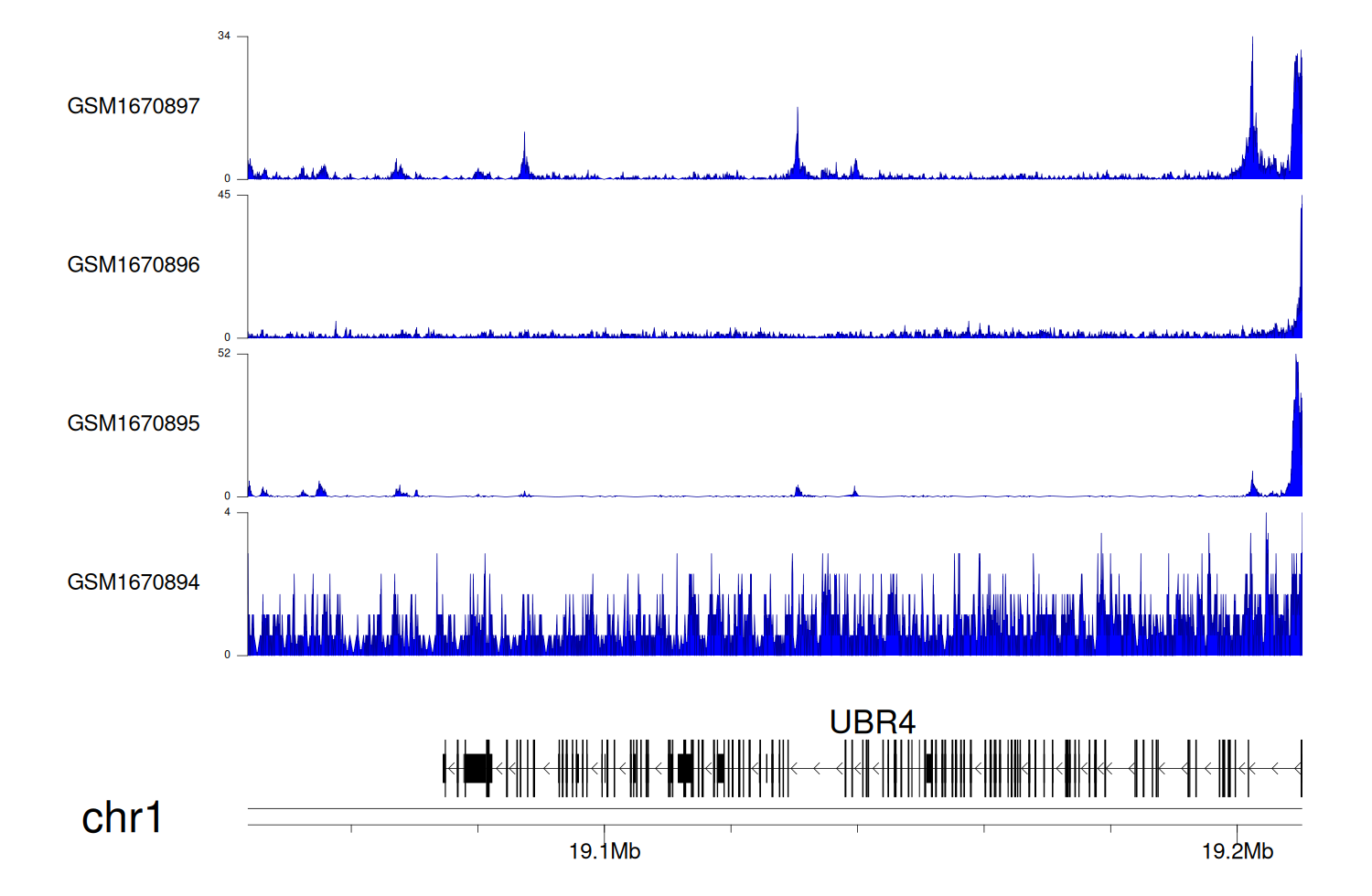 > Dataset: GSE68402 - UBR4 peak across samples