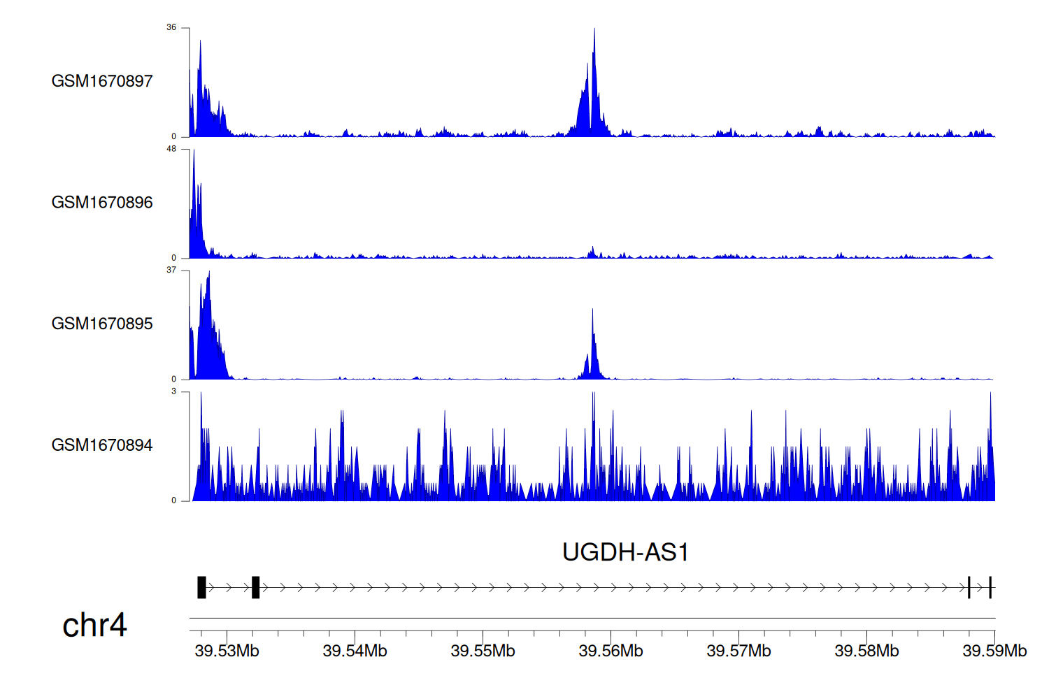 > Dataset: GSE270130 - UGDH-AS1 peak across samples