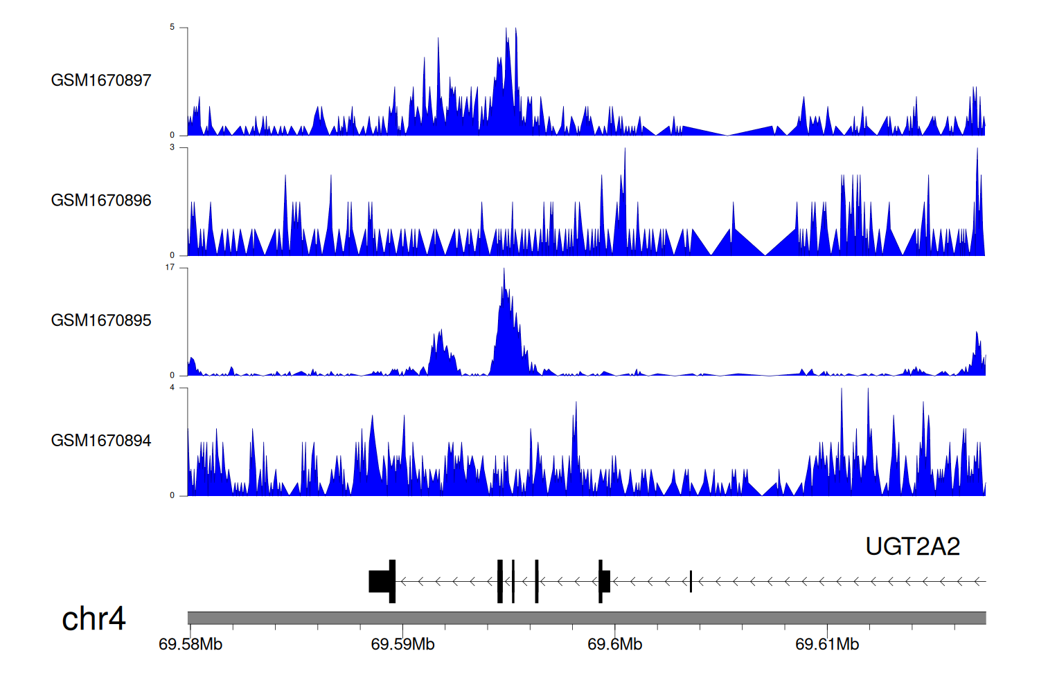 > Dataset: GSE68402 - UGT2A2 peak across samples