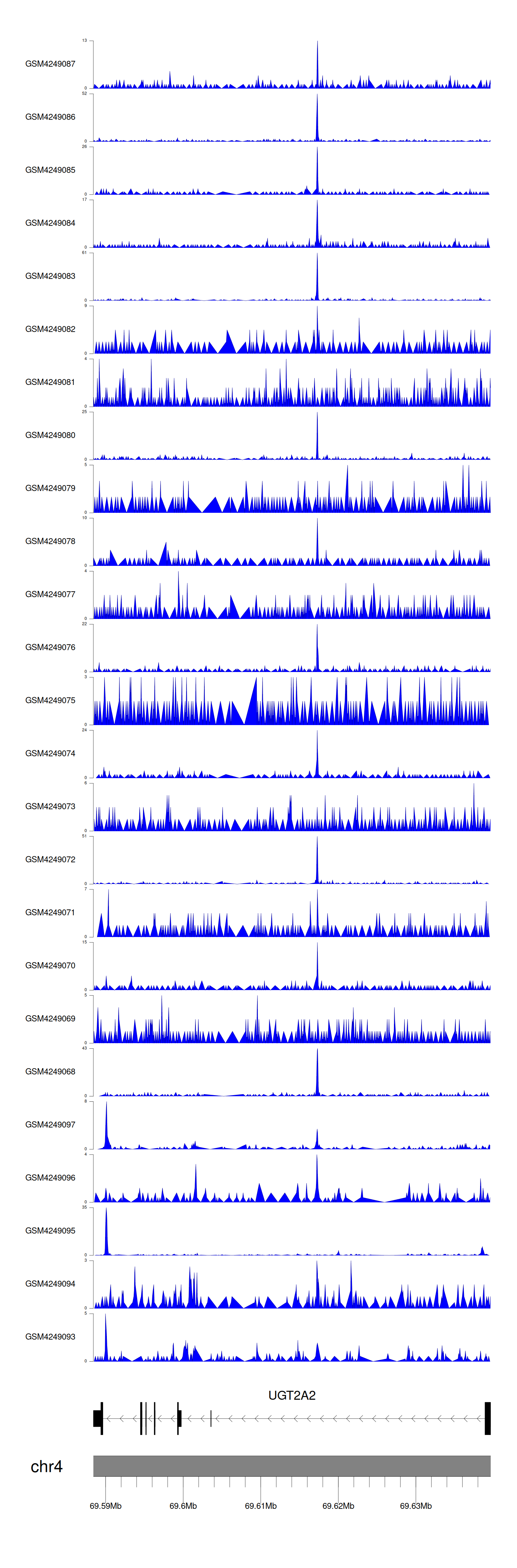 > Dataset: GSE143026 - UGT2A2 peak across samples