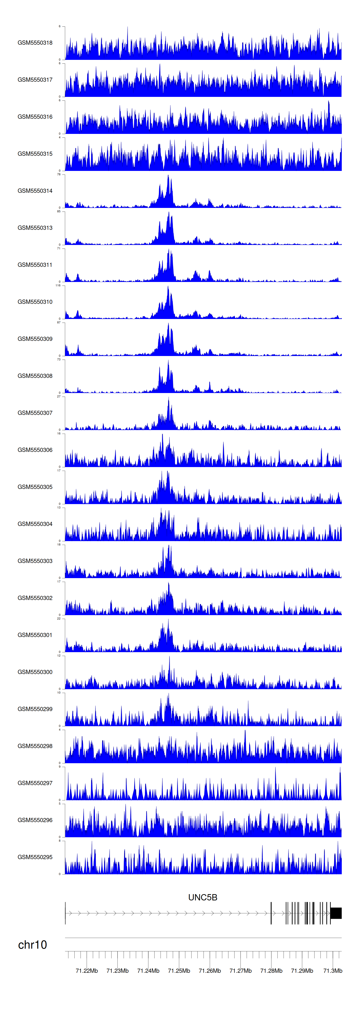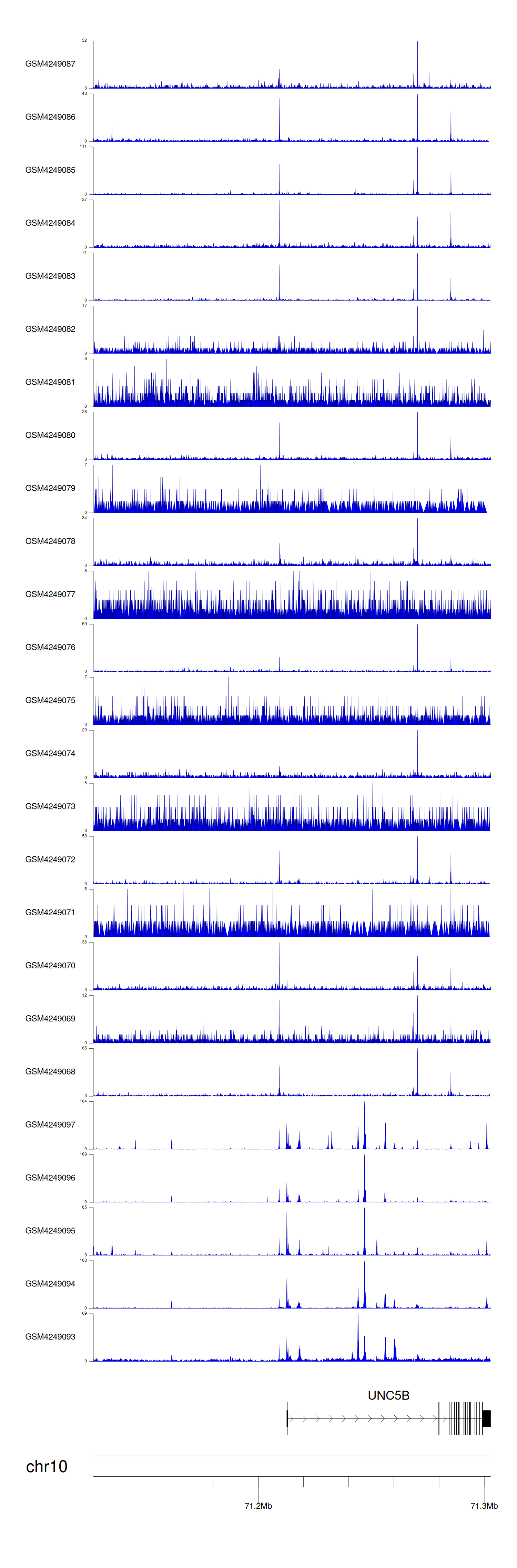 > Dataset: GSE143026 - UNC5B peak across samples