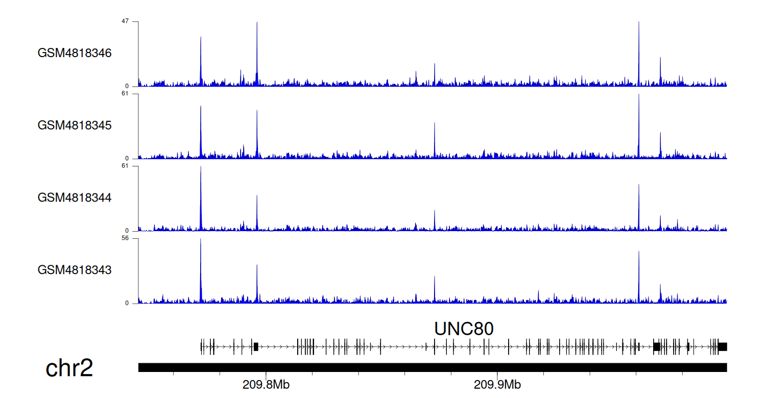 > Dataset: GSE131257 - UNC80 peak across samples