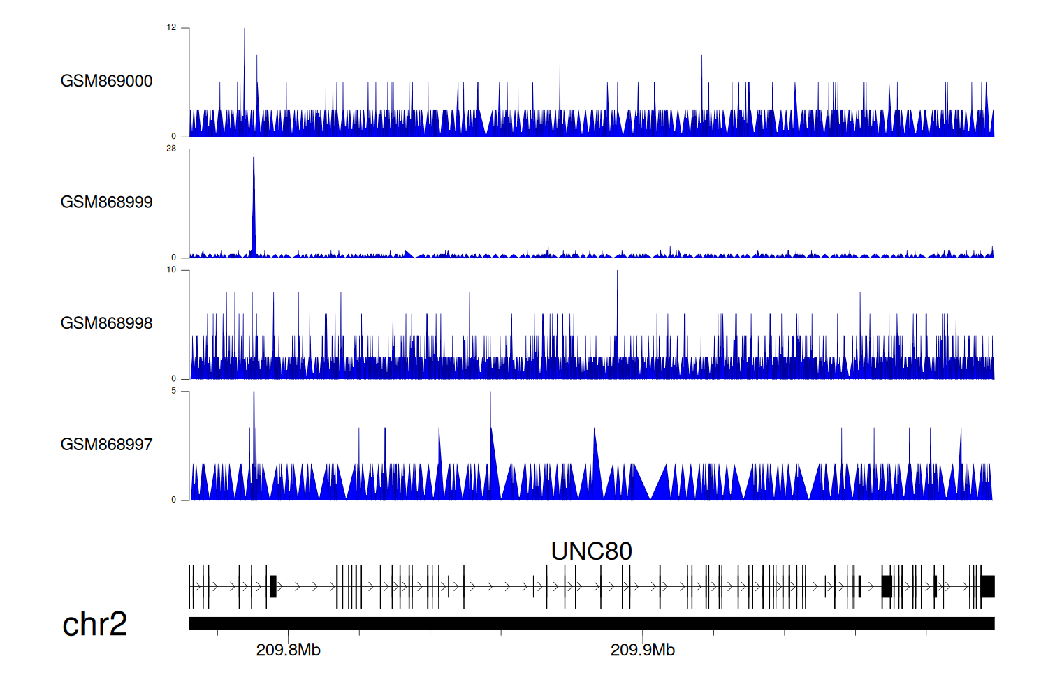 > Dataset: GSE35465 - UNC80 peak across samples