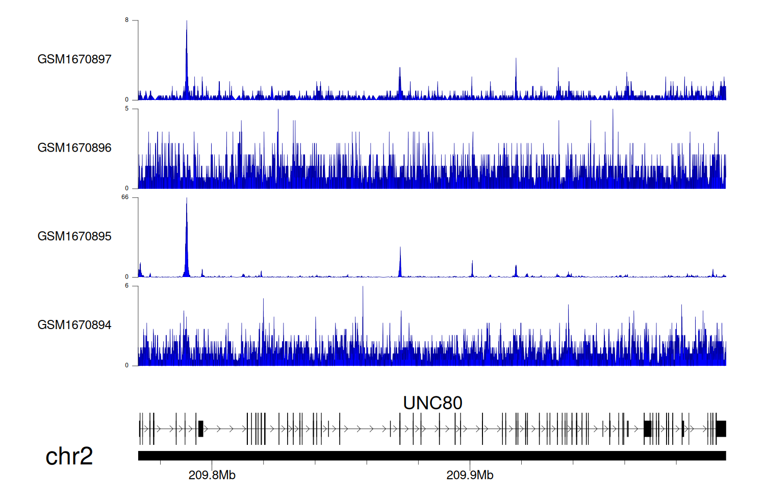 > Dataset: GSE68402 - UNC80 peak across samples