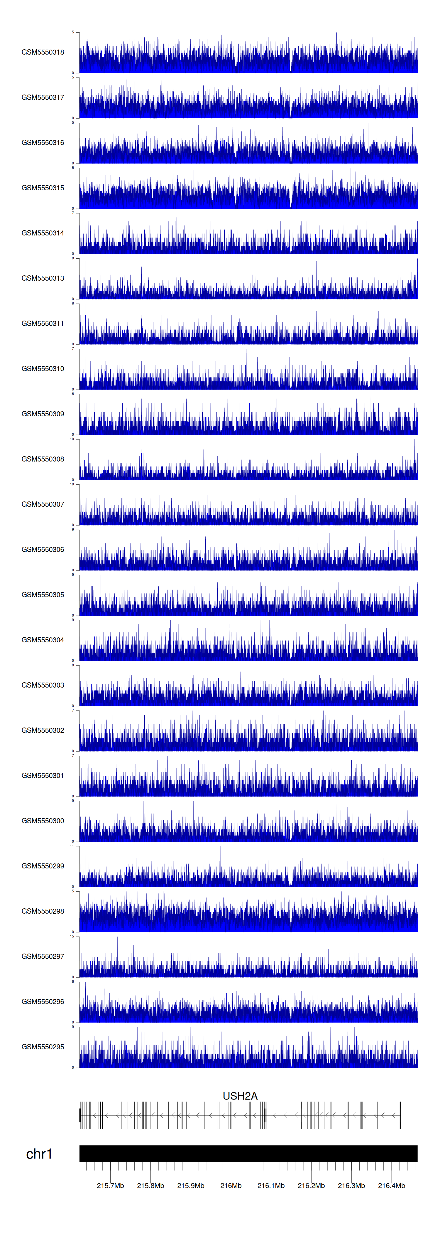 > Dataset: GSE183048 - USH2A peak across samples