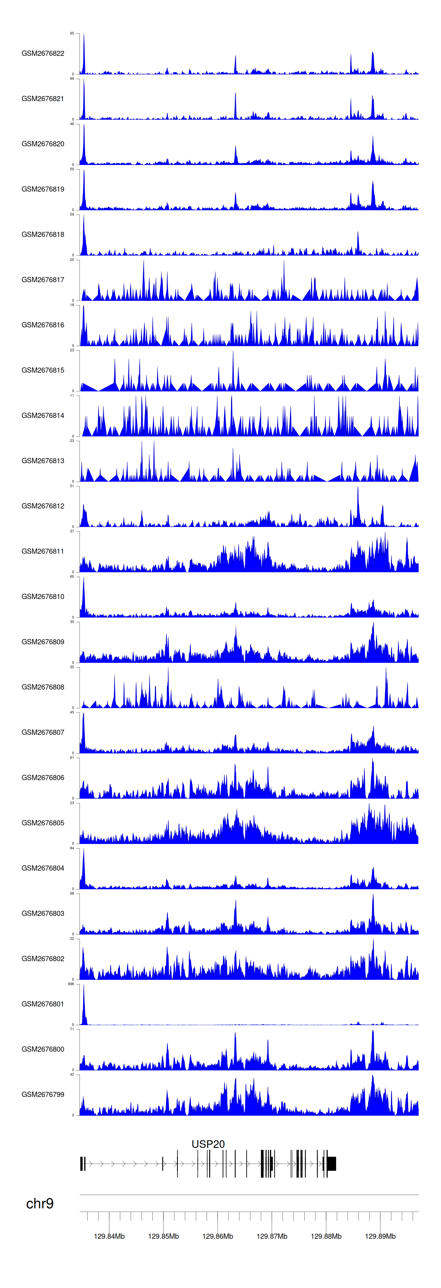 > Dataset: GSE100376 - USP20 peak across samples