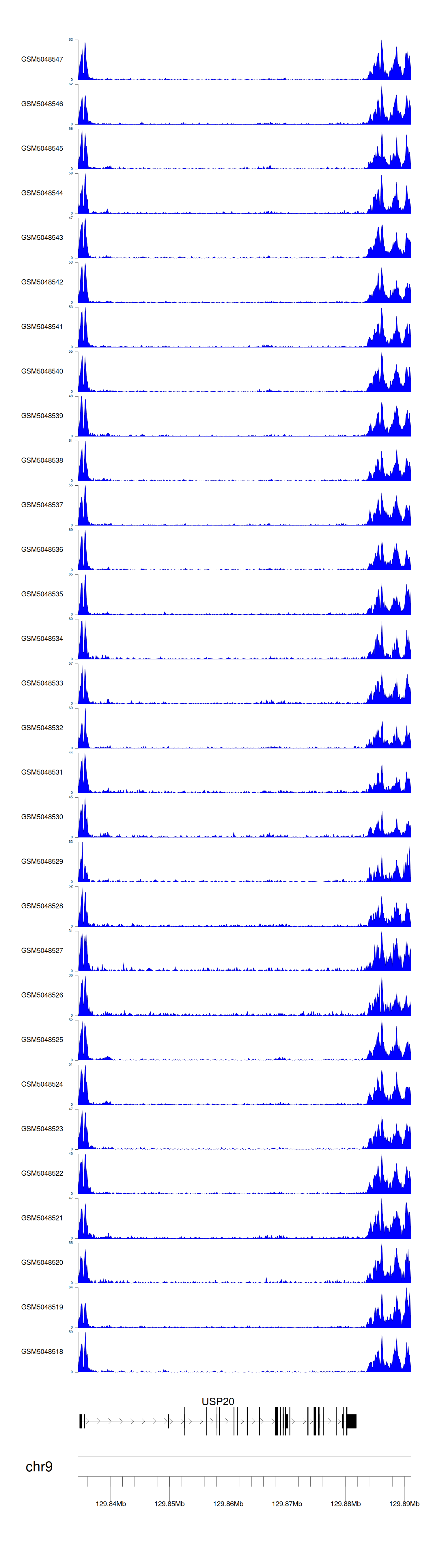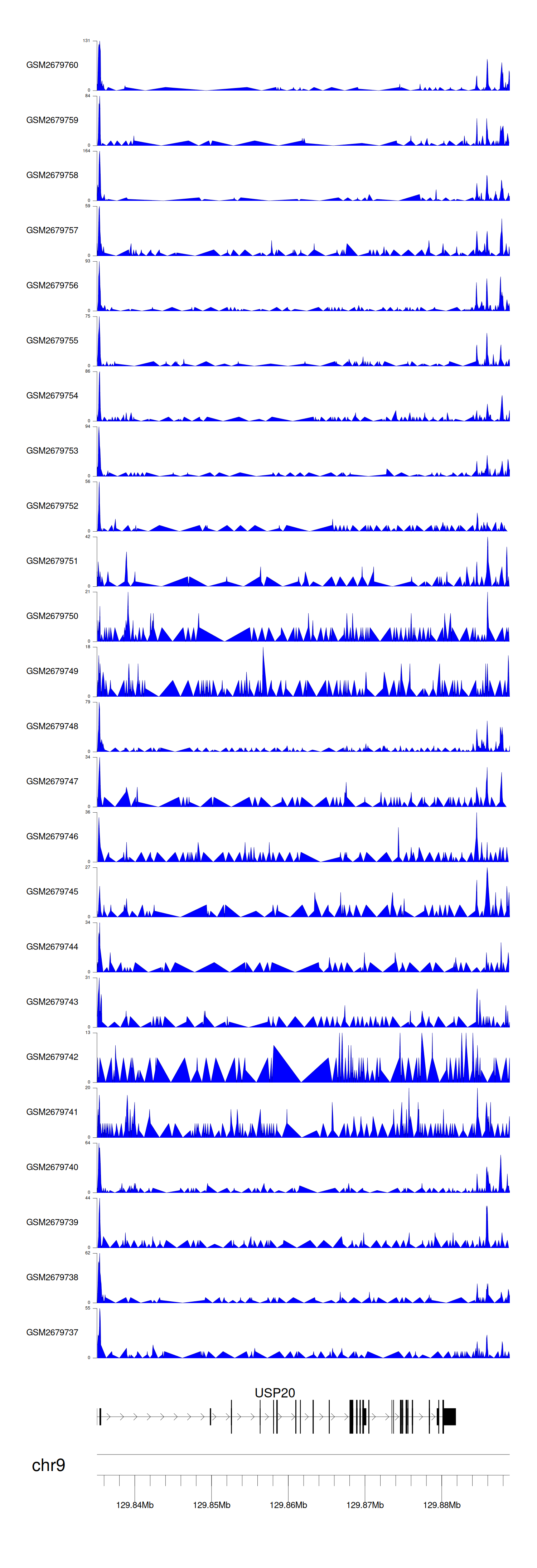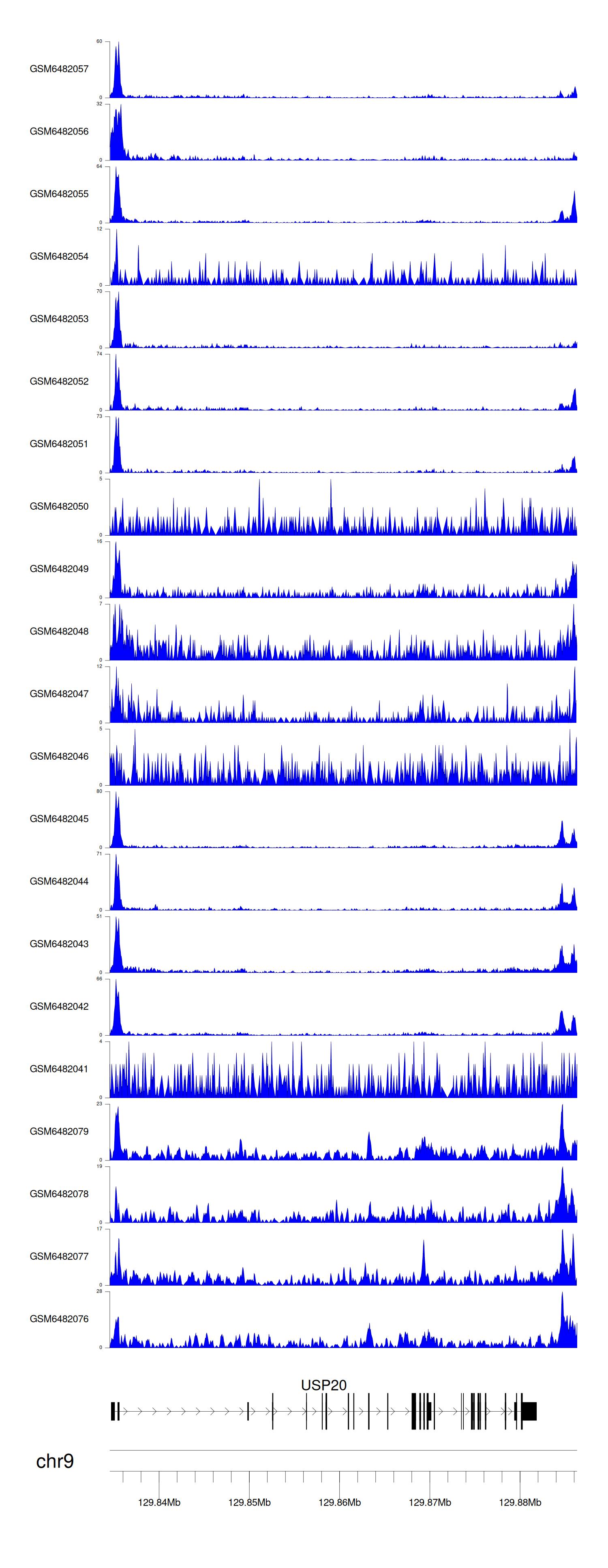 > Dataset: GSE165703 - USP20 peak across samples