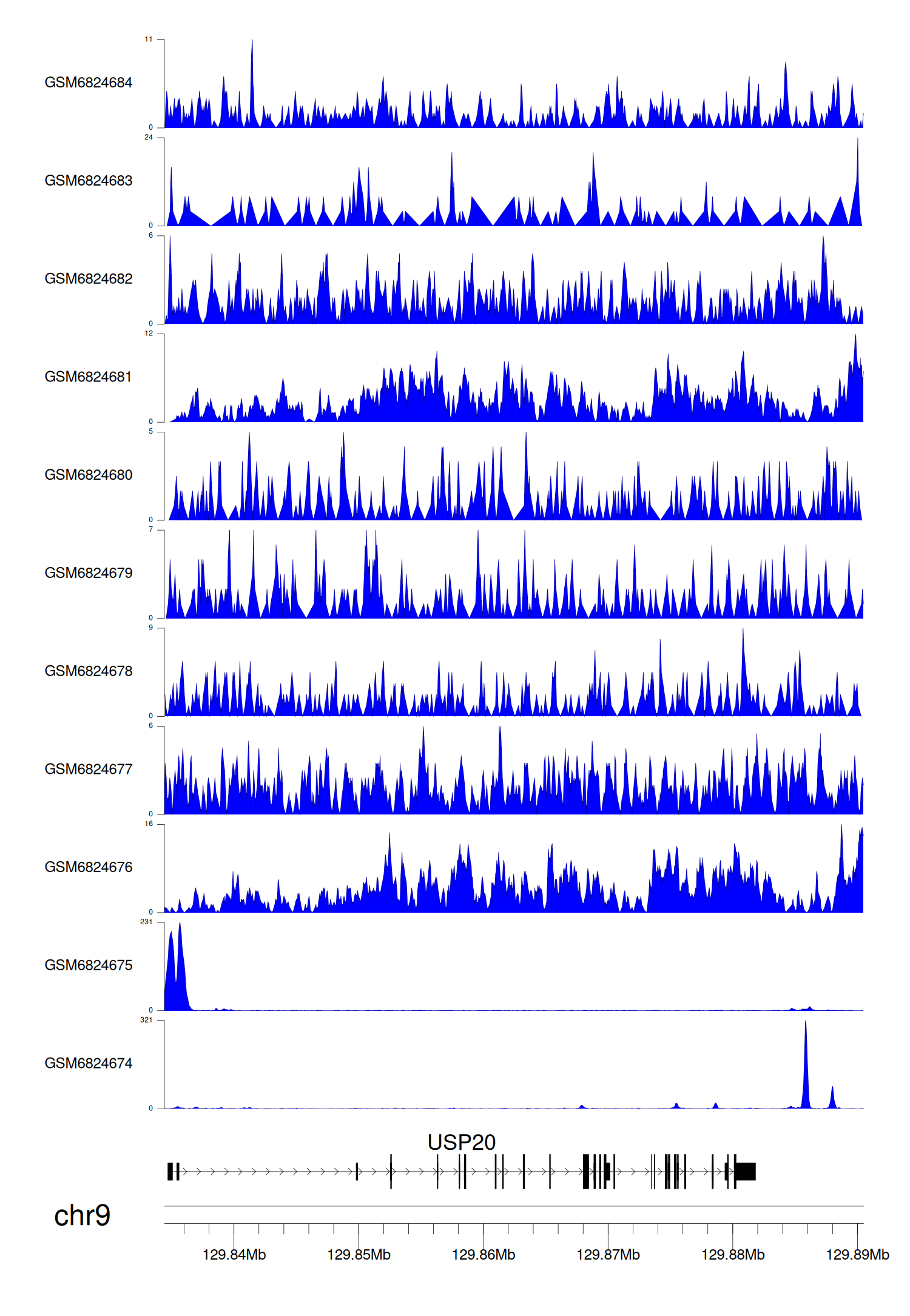 > Dataset: GSE221688 - USP20 peak across samples