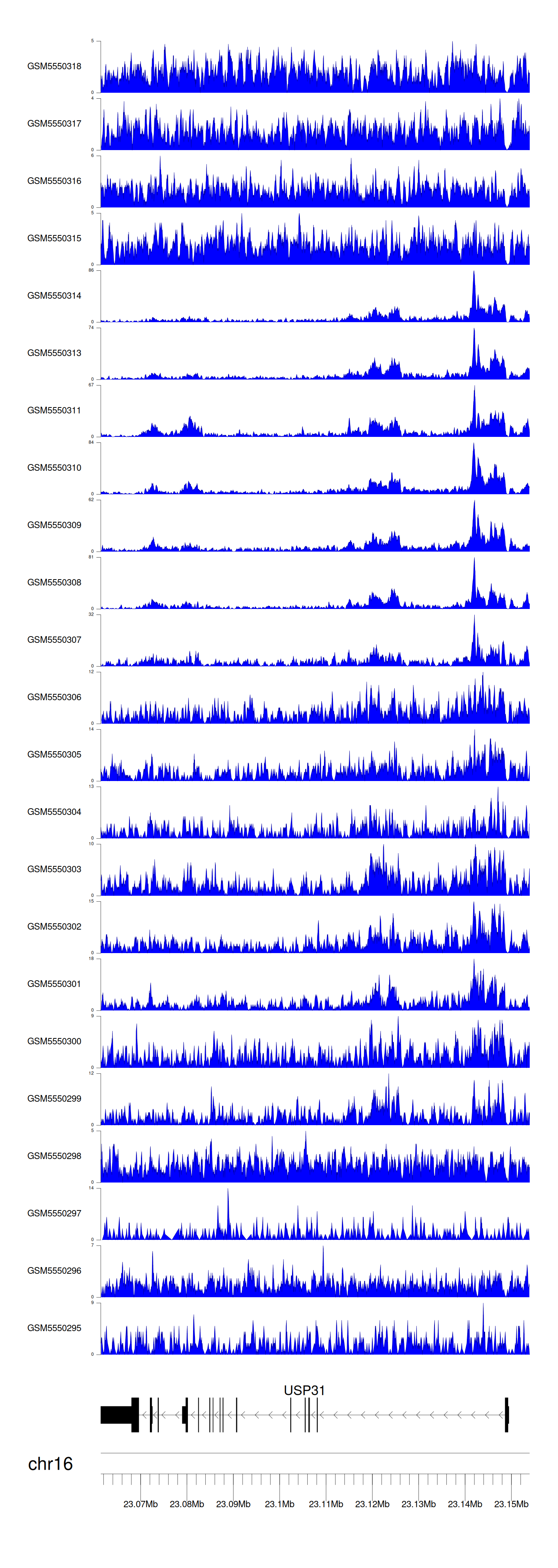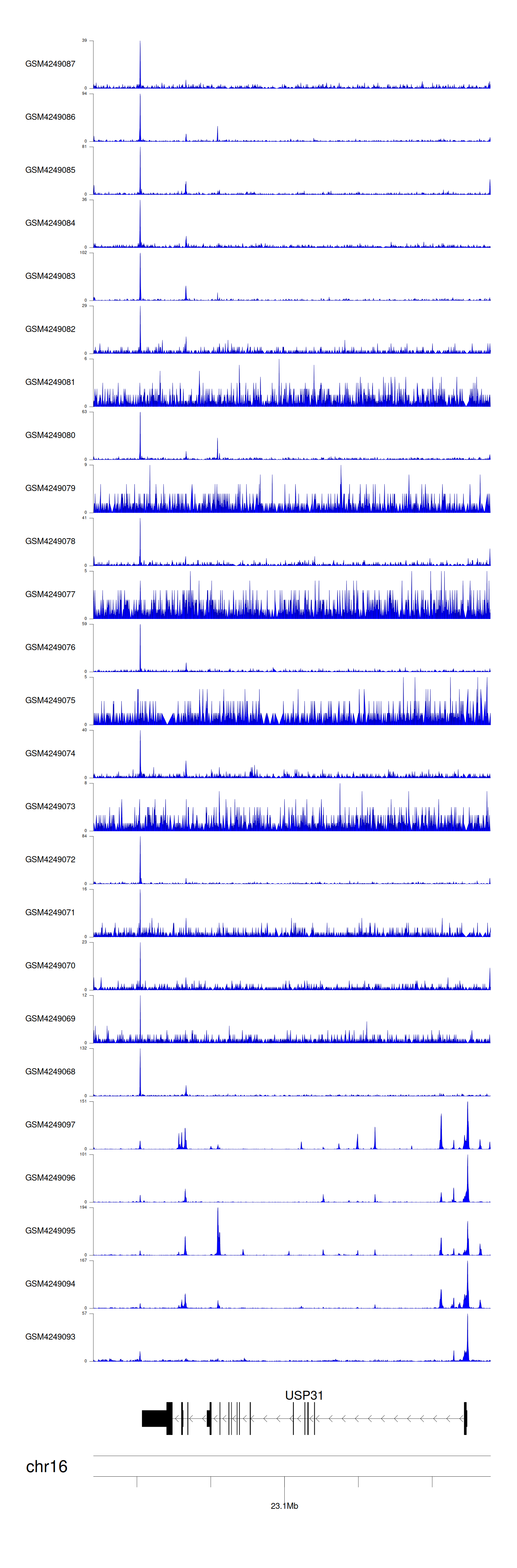 > Dataset: GSE143026 - USP31 peak across samples