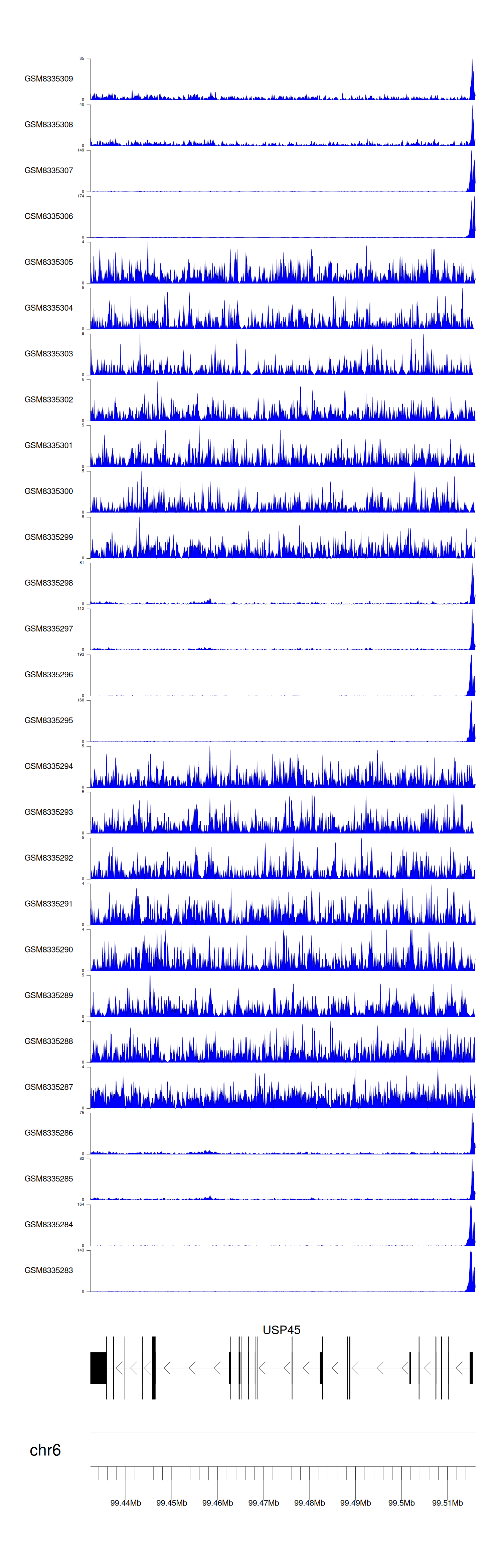 > Dataset: GSE270130 - USP45 peak across samples