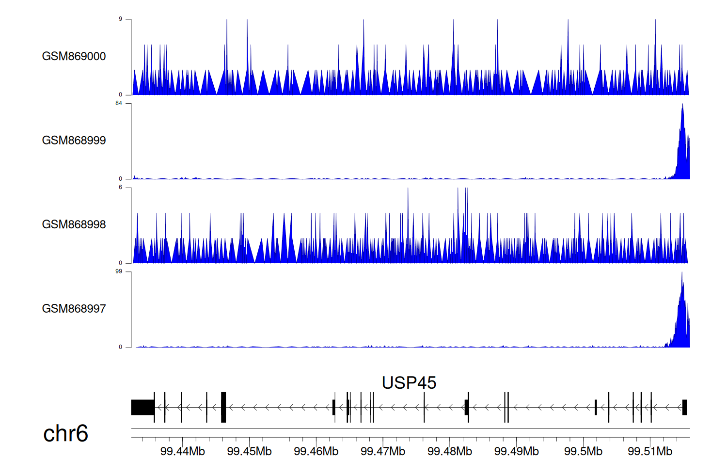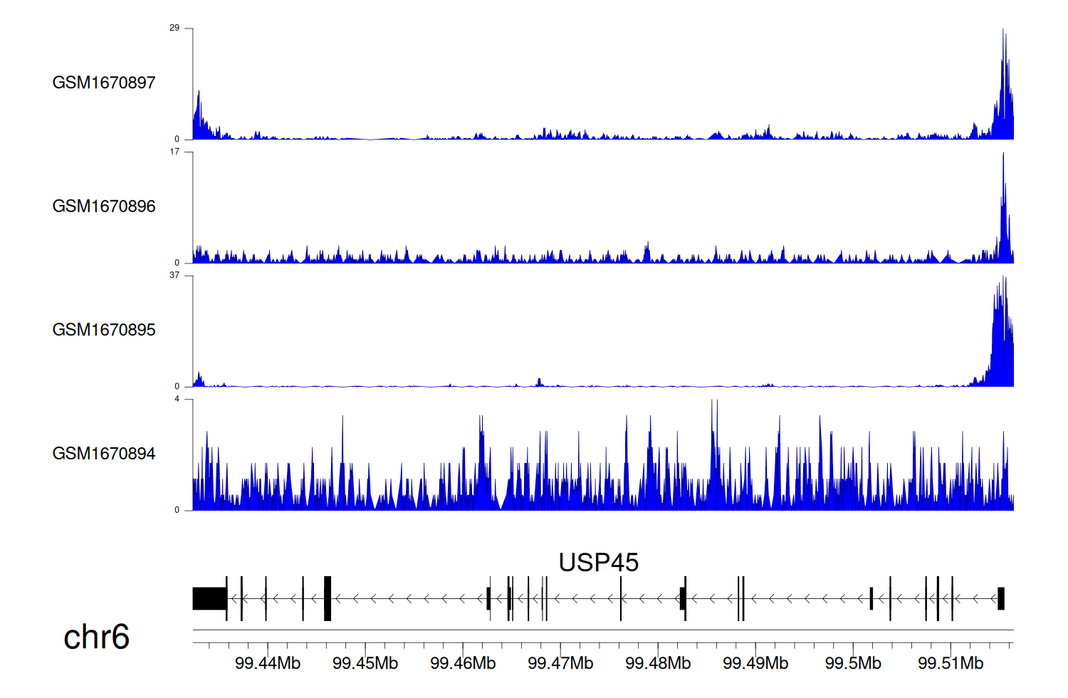 > Dataset: GSE68402 - USP45 peak across samples
