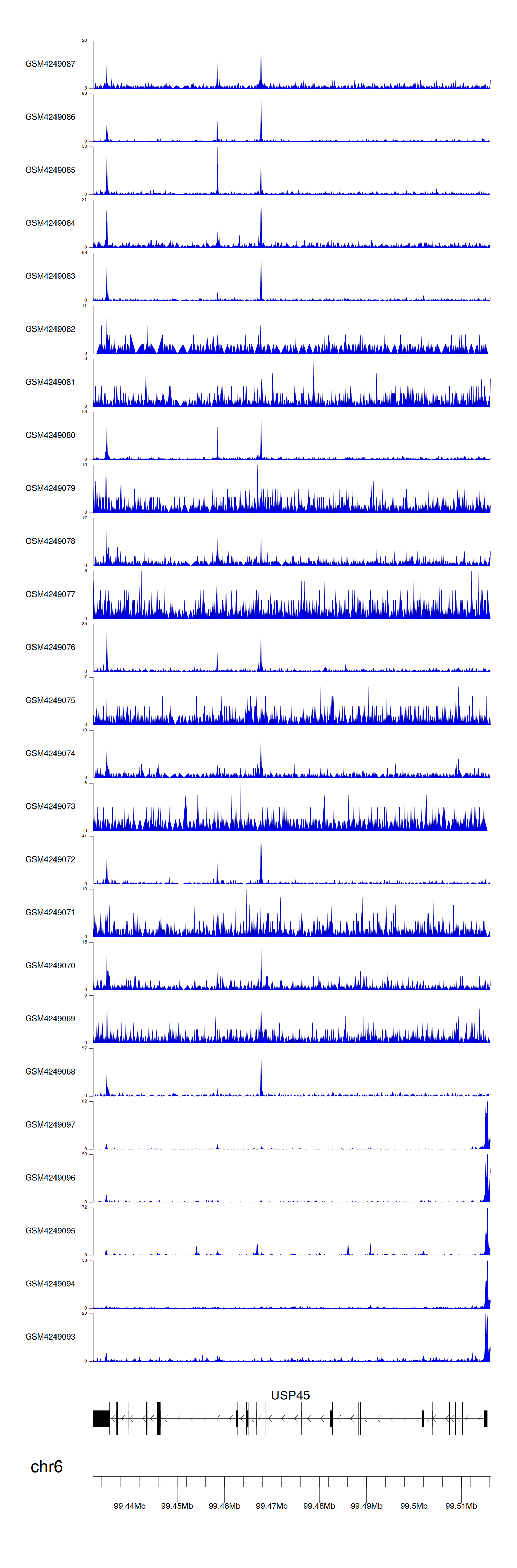 > Dataset: GSE143026 - USP45 peak across samples