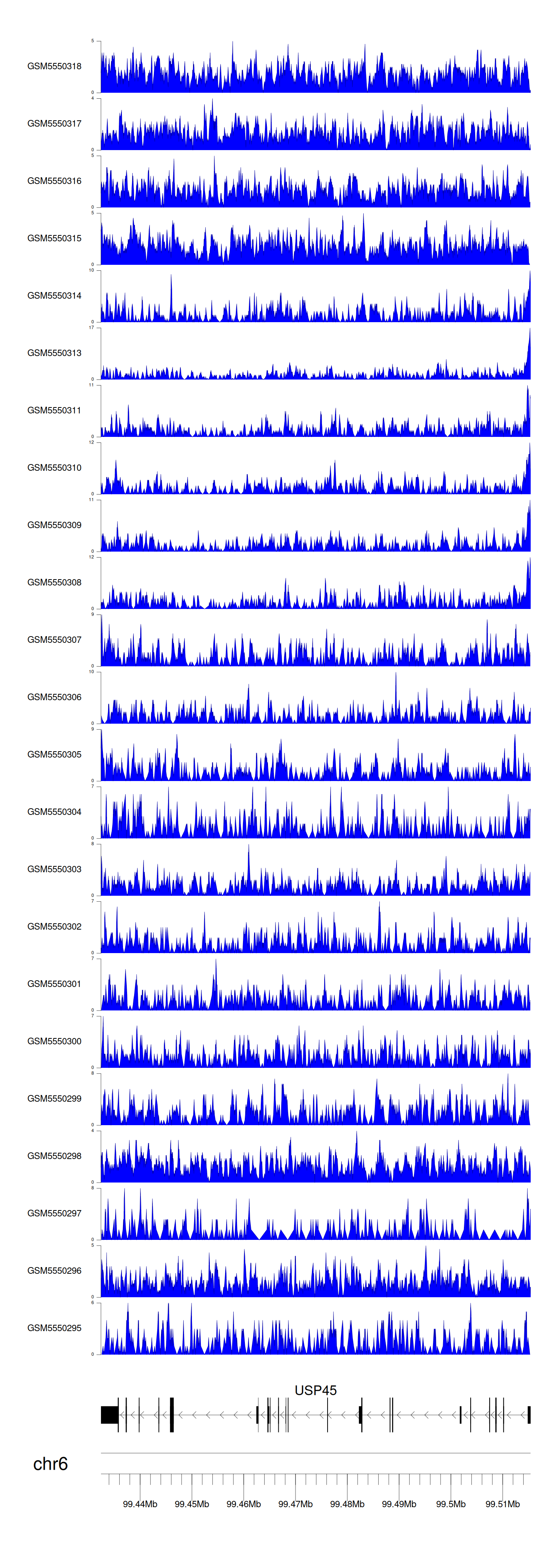 > Dataset: GSE183048 - USP45 peak across samples