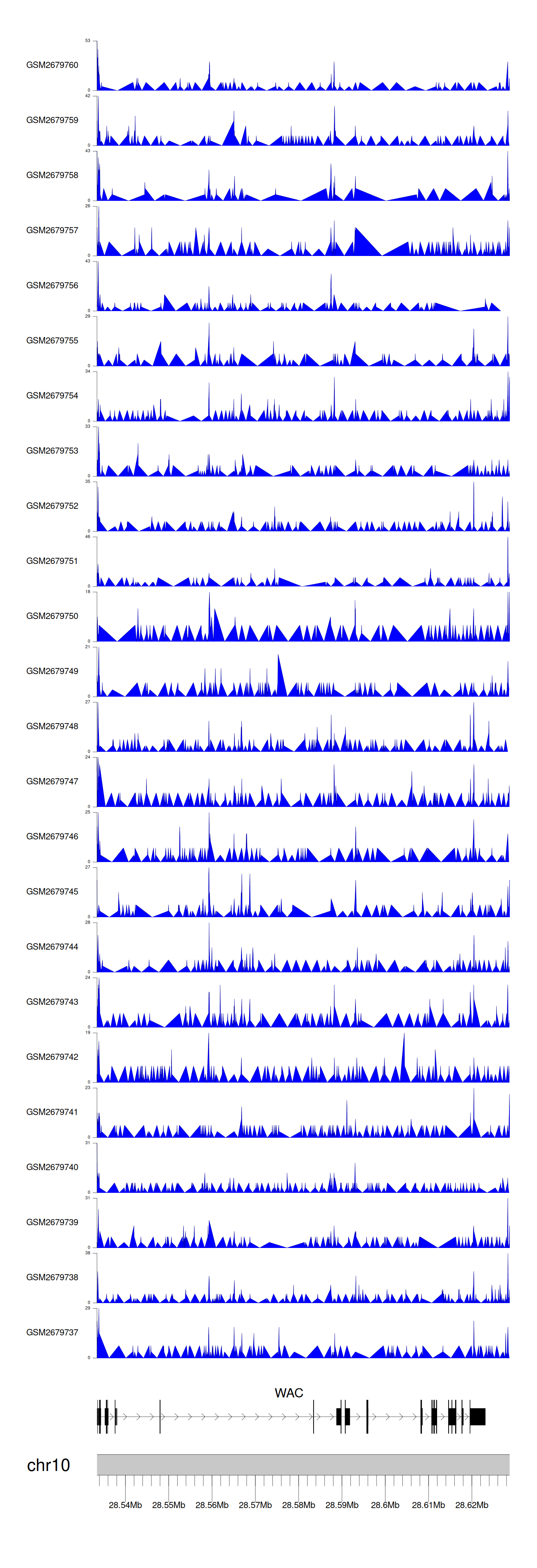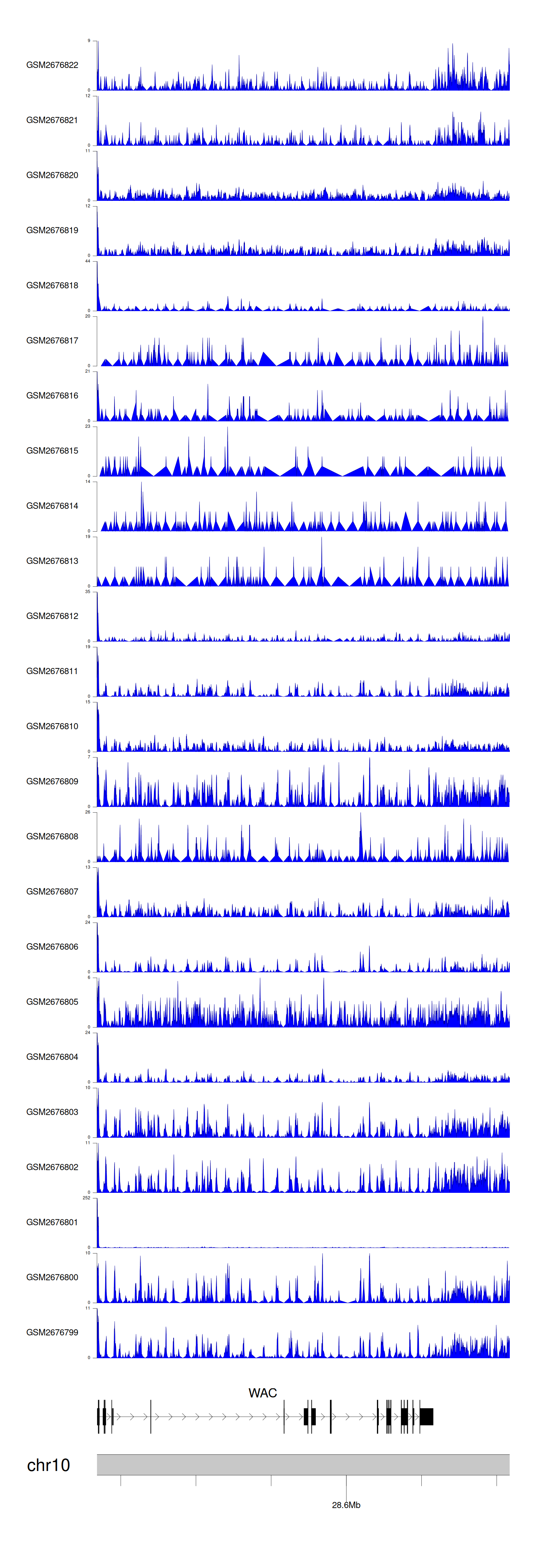 Summary The protein encoded by this gene contains a WW domain, which is a protein module found in a wide range of signaling proteins. This domain mediates protein-protein interactions and binds proteins containing short linear peptide motifs that are proline-rich or contain at least one proline. This gene product shares 94% sequence identity with the WAC protein in mouse, however, its exact function is not known. Alternative splicing results in multiple transcript variants. [provided by RefSeq, Dec 2008]