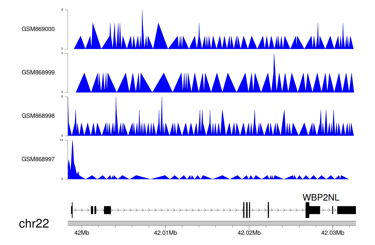 > Dataset: GSE68402 - WBP2NL peak across samples
