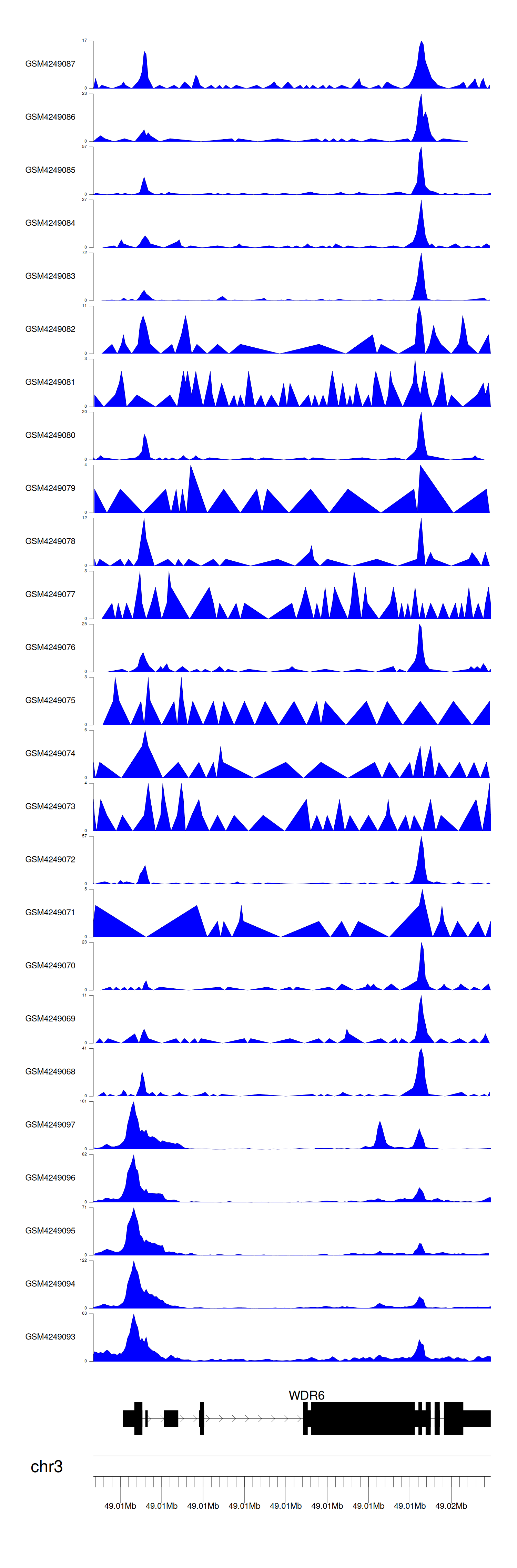 > Dataset: GSE143026 - WDR6 peak across samples