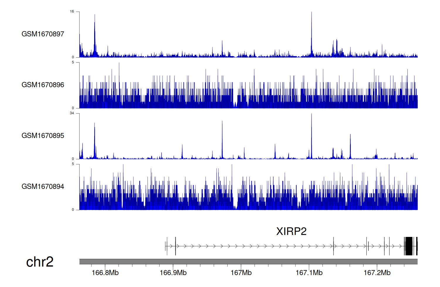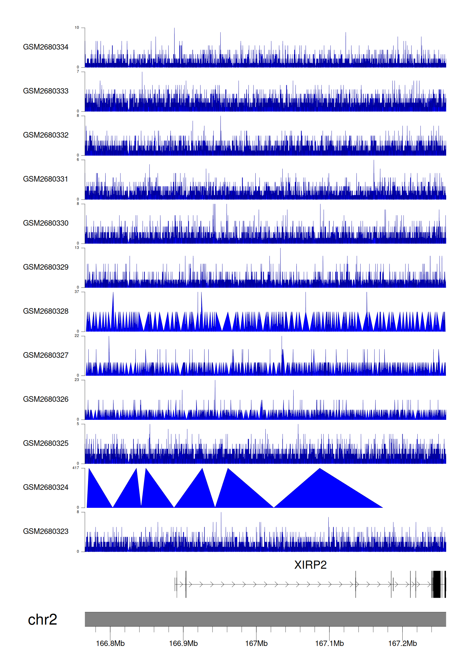 > Dataset: GSE68402 - XIRP2 peak across samples