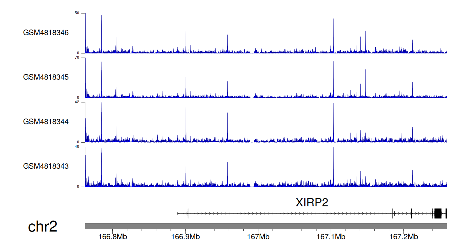 > Dataset: GSE270130 - XIRP2 peak across samples