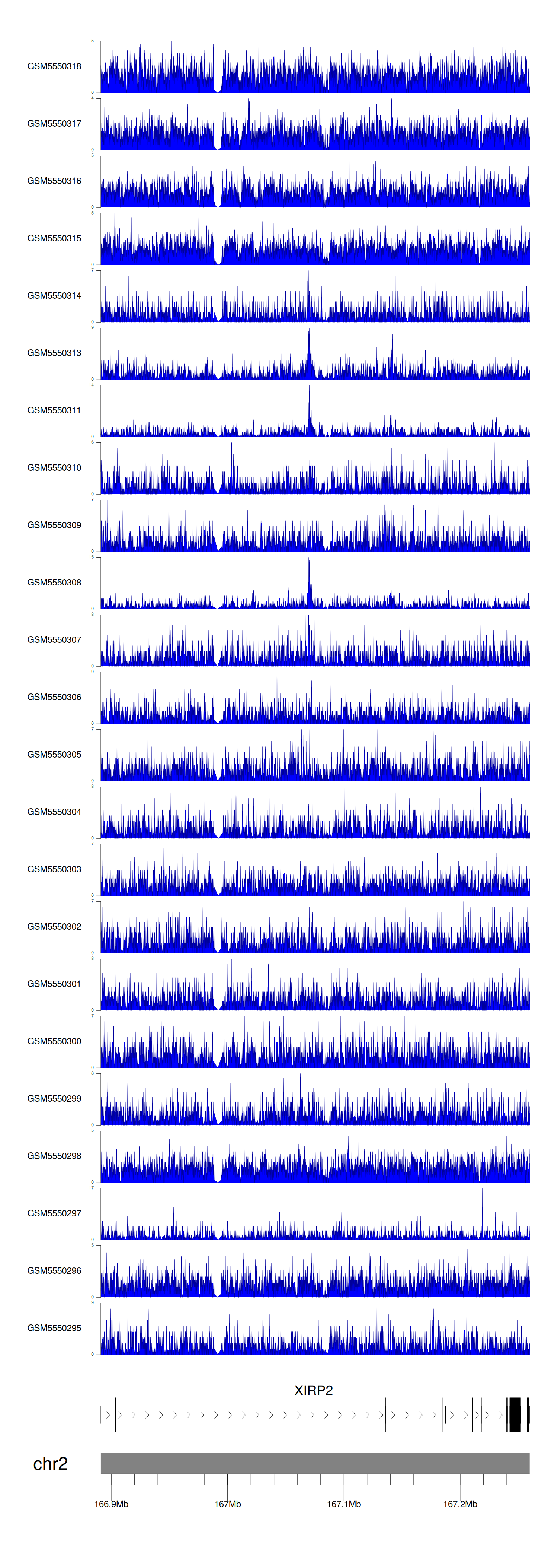 > Dataset: GSE183048 - XIRP2 peak across samples