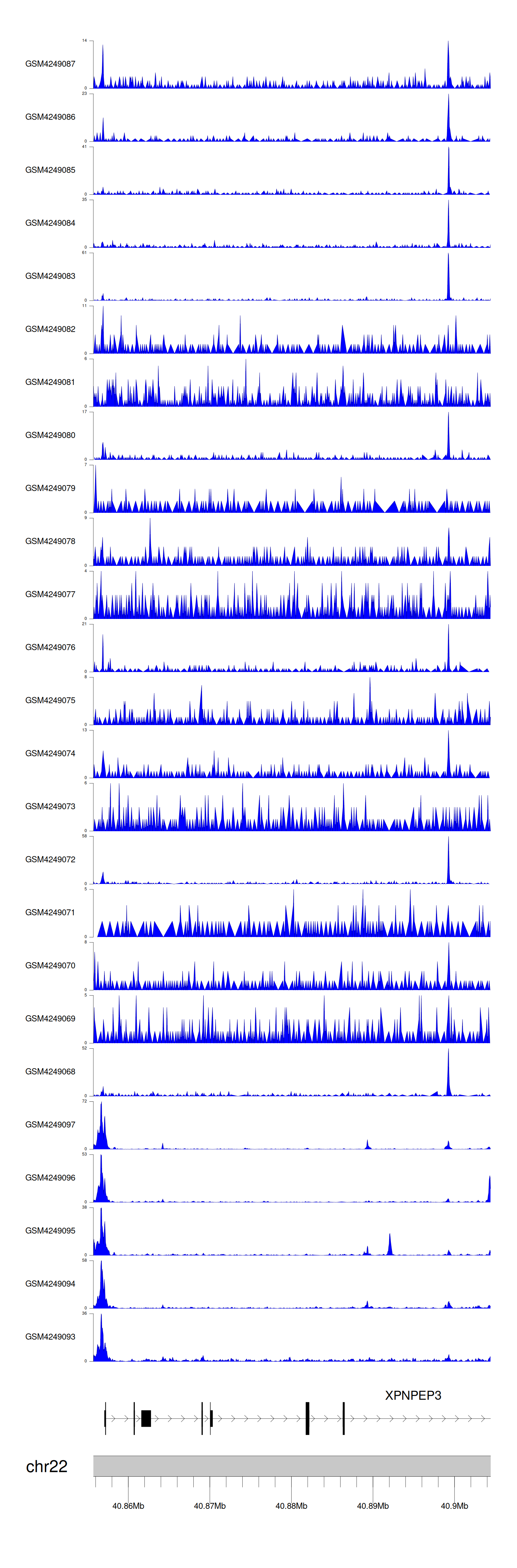 > Dataset: GSE143026 - XPNPEP3 peak across samples