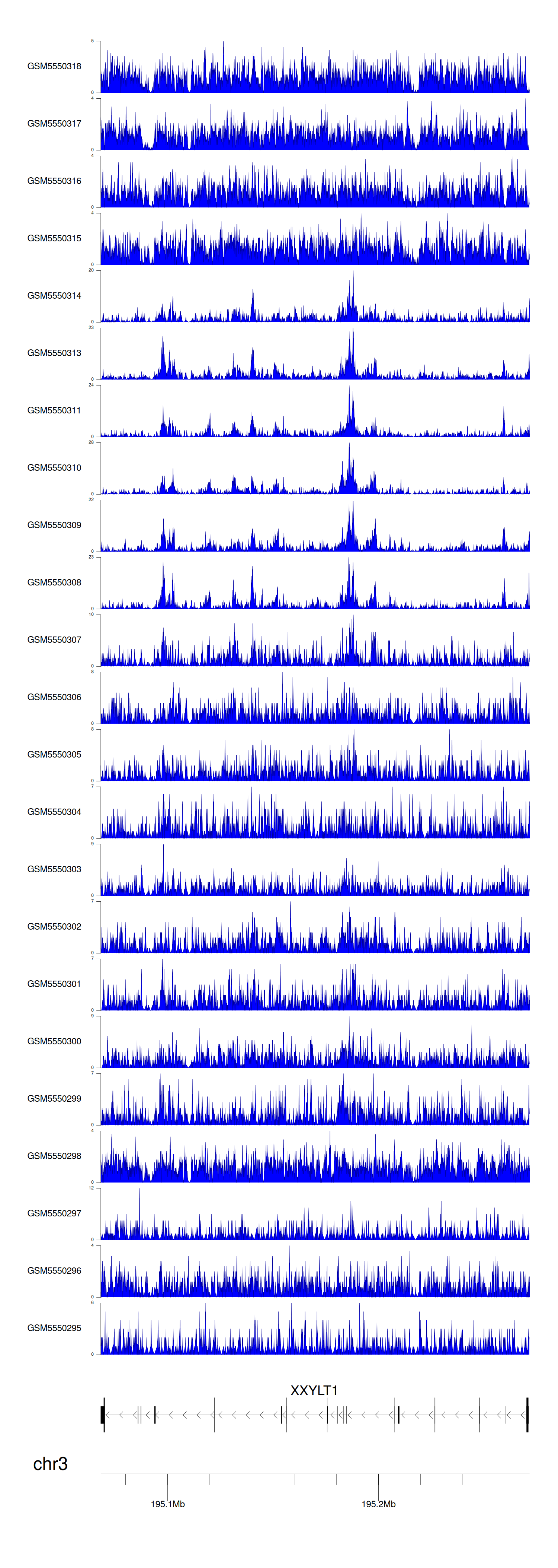 > Dataset: GSE143026 - XXYLT1 peak across samples