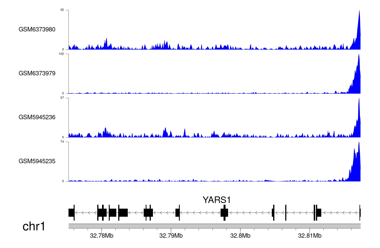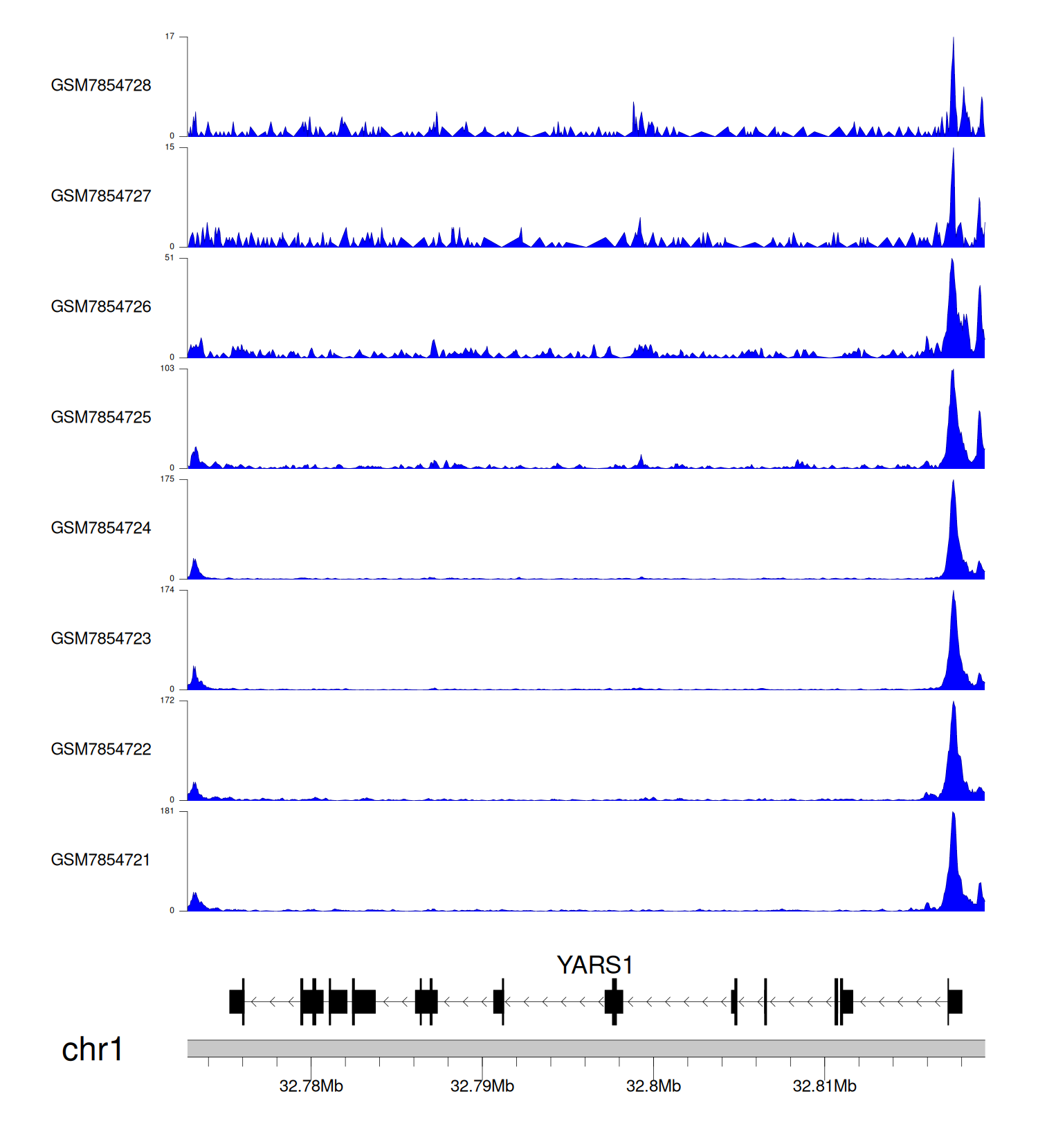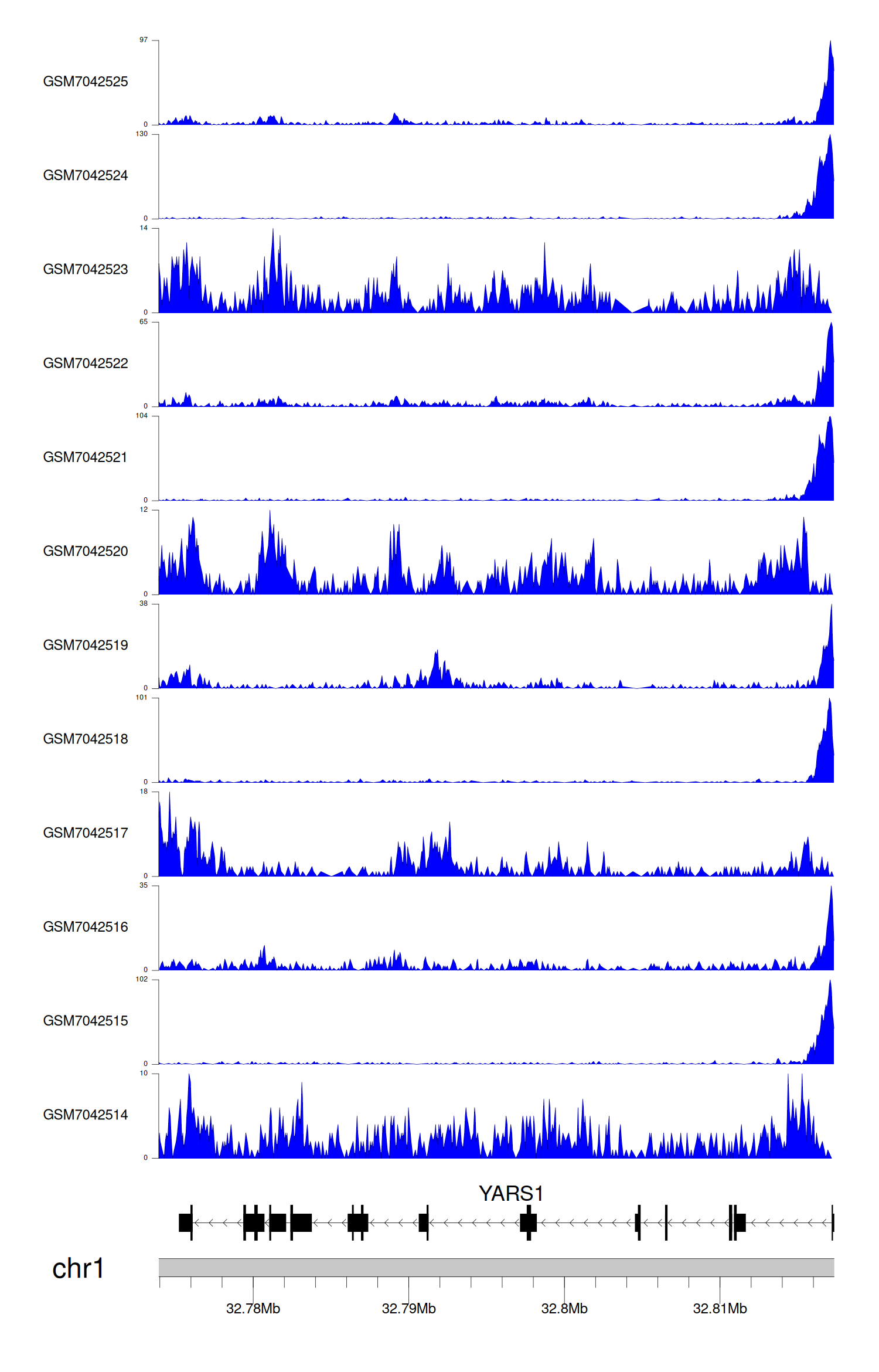 > Dataset: GSE225248 - YARS1 peak across samples